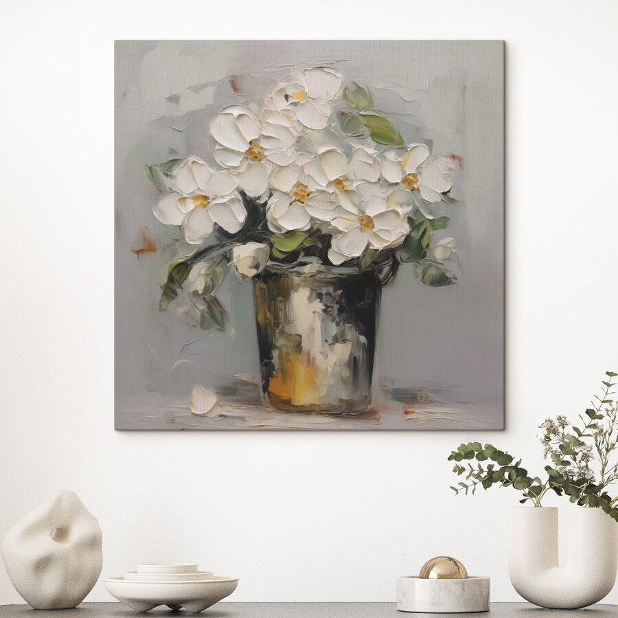 Rozjaśnij pomieszczenie tym zachwycającym wydrukiem na płótnie przedstawiającym kwiaty w wiadrze. Wyobraź sobie, że przechodzisz obok i czujesz powiew wiosny, niezależnie od pory roku. Radosne kwiaty, odważne, a jednocześnie delikatne, praktycznie tańczą na płótnie. Idealna na te dni, kiedy odrobina natury może podnieść na duchu, ta grafika dodaje odrobinę ciepła i kaprysu do każdej przestrzeni. To jak przeniesienie ogrodu do środka – nie wymaga podlewania! Umieść ją w swoim salonie lub przytulnym kącie i pozwól płynąć dobrym wibracjom. W końcu kto nie kocha odrobiny kwiatowej radości?