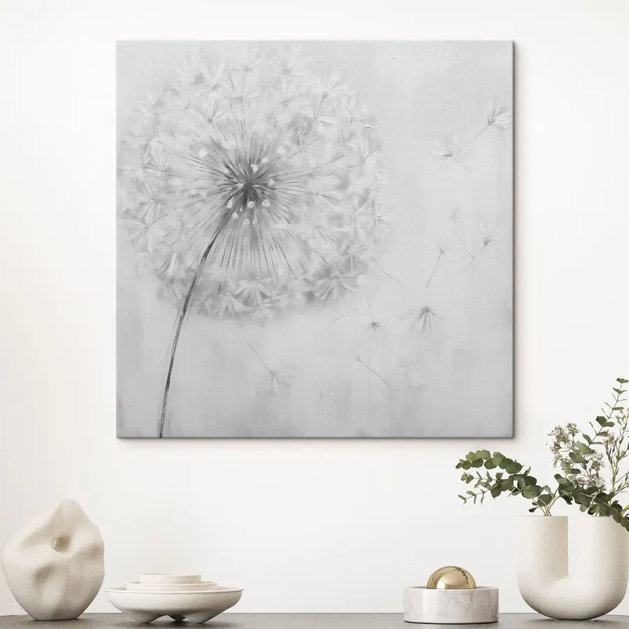 Odmień każde pomieszczenie dzięki temu czarującemu drukowi na płótnie przedstawiającemu delikatny mniszek lekarski. To nie tylko sztuka; to chwila zamrożona w czasie, uchwycenie tego kapryśnego tańca nasion unoszących się w powietrzu – każde z nich to małe życzenie uwolnione. Wyobraź sobie, że spoglądasz na to dzieło popijając kawę, czując lekkość, jakby możliwości świata były na wyciągnięcie ręki. Idealny do dodania odrobiny minimalistycznego uroku do przytulnego zakątka lub rozjaśnienia bardziej formalnego otoczenia. Szepcze spokój, sprawiając, że trudno się nie uśmiechnąć. Minimalny wysiłek, maksymalny efekt!