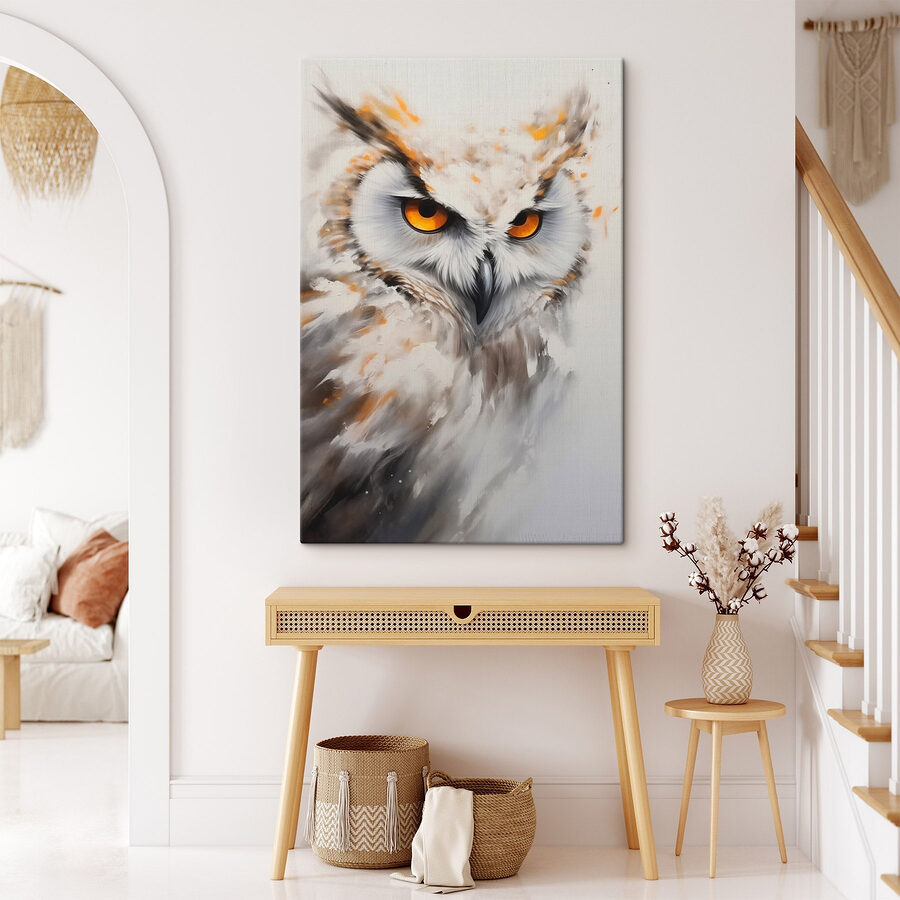 Poznaj najbardziej urzekającą starą, mądrą sowę w okolicy, z oczami, które prawdopodobnie mogłyby cię przejrzeć na wylot. Ten wydruk na płótnie oddaje jej oszałamiające spojrzenie, zmieniając każdą ścianę w artystyczny początek rozmowy. Wyobraź sobie, że wchodzisz do pokoju i jesteś witany przez tego pierzastego przyjaciela, który ma oko na wszystko, dodając jednocześnie odrobinę uroku natury. Niezależnie od tego, czy wisi nad przytulnym kącikiem do czytania, czy dodaje uroku przestrzeni biurowej, wnosi odrobinę dzikiej atmosfery do wnętrza. Idealny dla miłośników zwierząt, entuzjastów sztuki lub każdego, kto potrzebuje odrobiny tajemniczości w swoim życiu. Wyobraź to sobie: spokojny wieczór, filiżanka herbaty i sowa dotrzymująca ci towarzystwa. Czyż to nie nastrój?