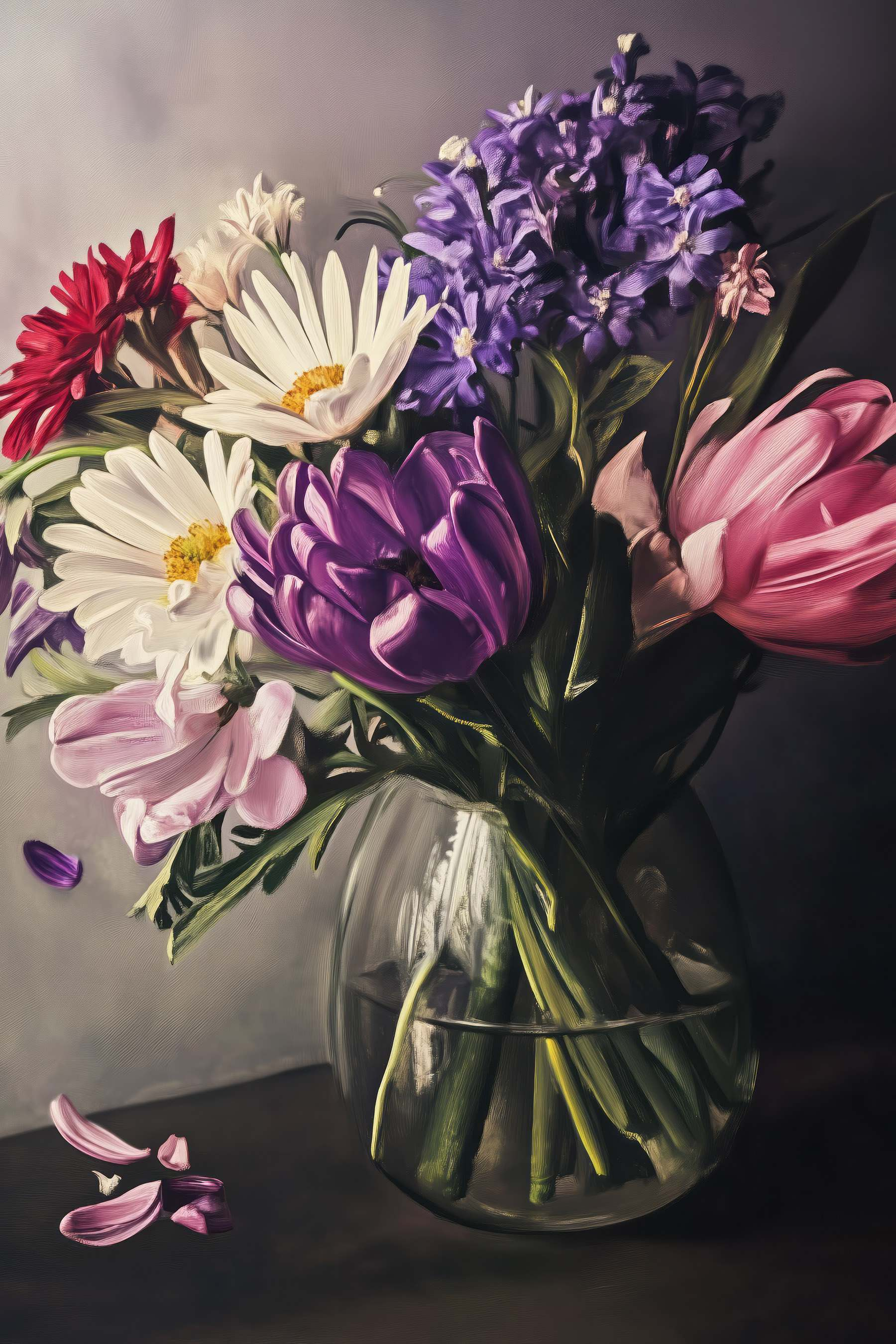Rozjaśnij każdą przestrzeń dzięki temu przyciągającemu wzrok obrazowi na płótnie “Vase of Flowers”. Wyobraź sobie, że wchodzisz do pokoju i od razu witasz się feerią barw i delikatnym przypomnieniem piękna natury. Te wesołe tulipany i stokrotki zdają się tańczyć, zapewniając odrobinę radości i nutę wiosennej magii, niezależnie od pory roku. Powieś go w przytulnym zakątku lub nad kanapą i obserwuj, jak zmienia nastrój – idealny do pobudzania rozmów lub po prostu rozjaśniania własnego dnia. Dodatkowo, nie będziesz musiał martwić się o podlewanie tych kwiatów! Pozwól więc, aby ta grafika przeniosła Cię do świata kwiatowej kapryśności, w którym każde spojrzenie jest małą ucieczką.