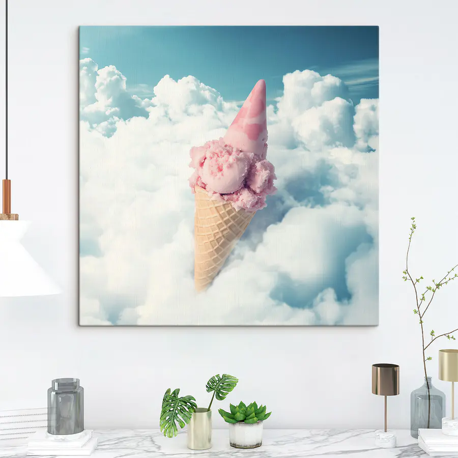 Wyobraź sobie, że umieszczasz ten bezczelny różowy rożek do lodów w swojej przestrzeni. Unoszący się w sennym tle chmur, dodaje odrobinę kaprysu do każdego pomieszczenia. Idealny do przytulnej kuchni lub tętniącego życiem pokoju zabaw, ten obraz na płótnie nadaje zabawny, beztroski klimat. To prawie tak, jakby lody domagały się skosztowania! Wyobraź sobie przyjęcie urodzinowe dziecka lub leniwe letnie popołudnie – każdy poczuje ten radosny pośpiech, patrząc na ten obraz. Tylko uważaj, to może sprawić, że będziesz mieć ochotę na deser za każdym razem, gdy przejdziesz obok! Taki słodki akcent, aby rozjaśnić dzień.