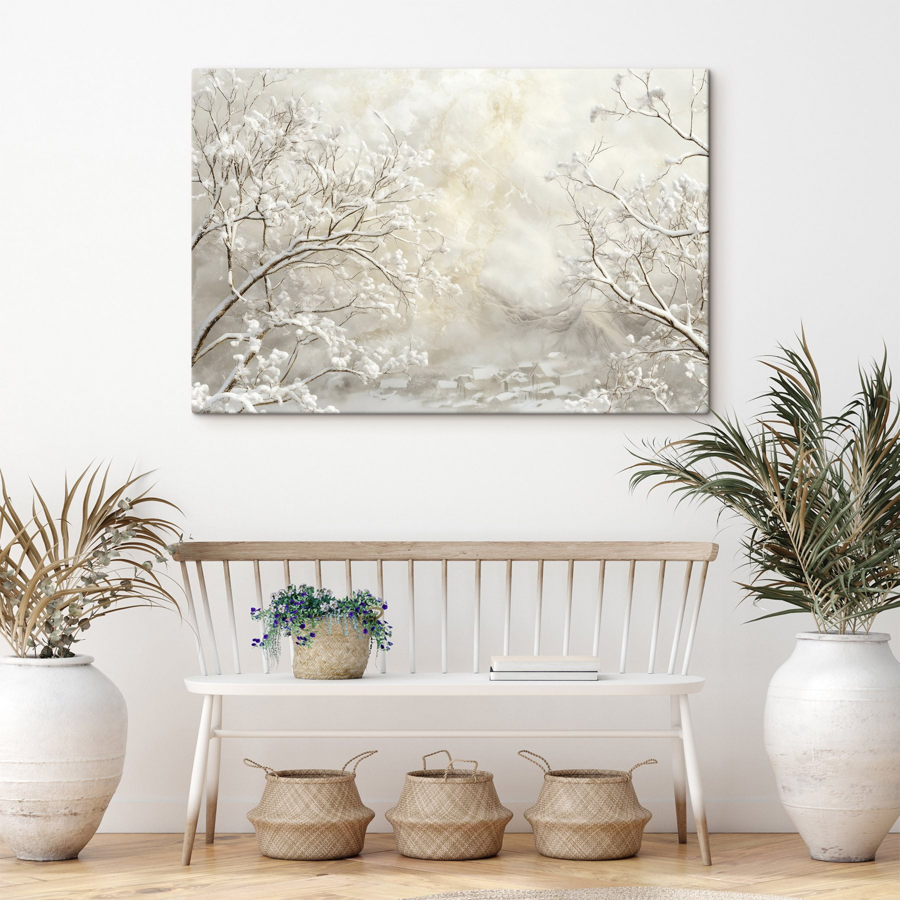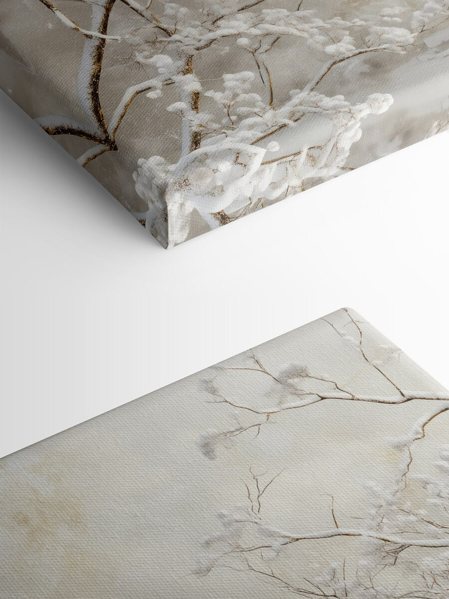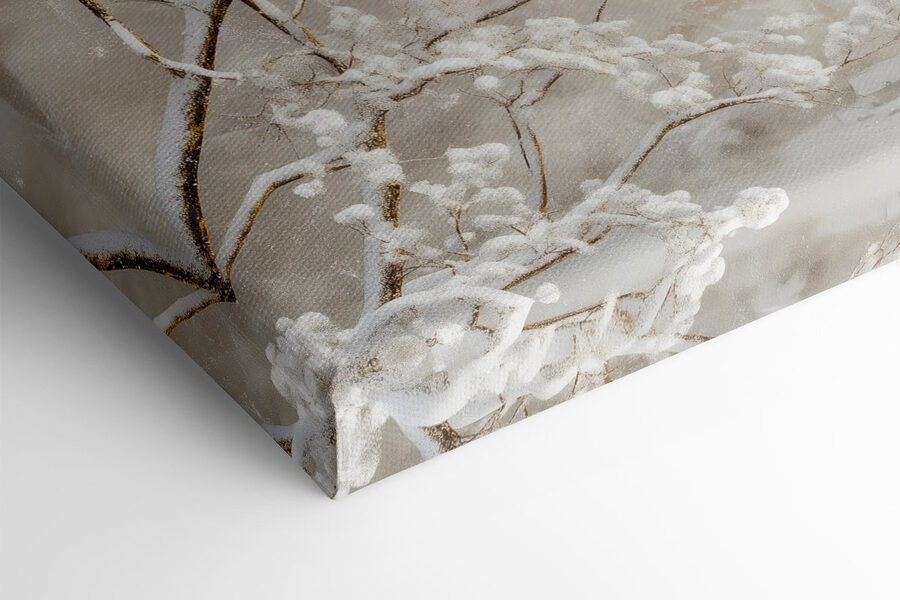 Odmień swoją przestrzeń dzięki temu oszałamiającemu drukowi na płótnie przedstawiającemu ośnieżone drzewa w sennym, śnieżnym krajobrazie. Wyobraź sobie, że przytulasz się z kubkiem kakao, patrzysz na to dzieło i czujesz chłód zimy – mile widziana ucieczka od codziennego zgiełku. Miękkie odcienie i delikatne formy przywołują spokojną, niemal magiczną atmosferę, idealną do każdego pomieszczenia. Niezależnie od tego, czy znajduje się nad kominkiem, czy zdobi cichy kącik, wnosi odrobinę natury do wnętrza, przypominając nam o pięknie w prostocie. Wystarczy to sobie wyobrazić: każde spojrzenie jest jak powiew świeżego powietrza.