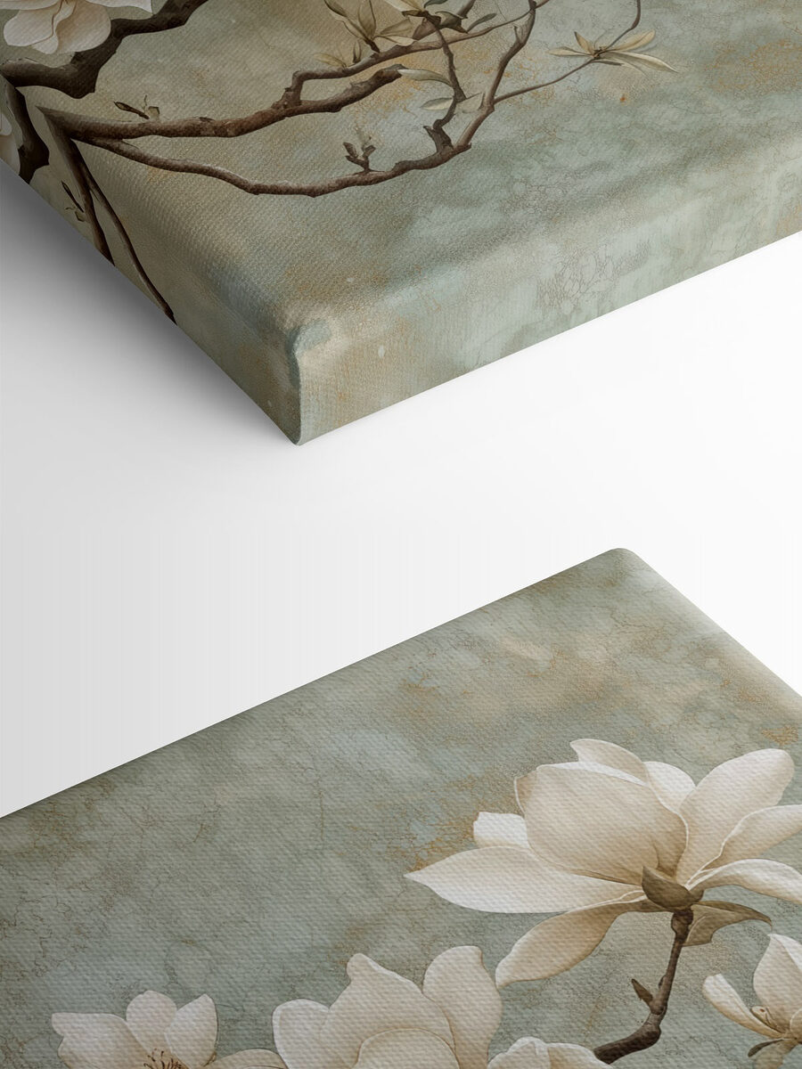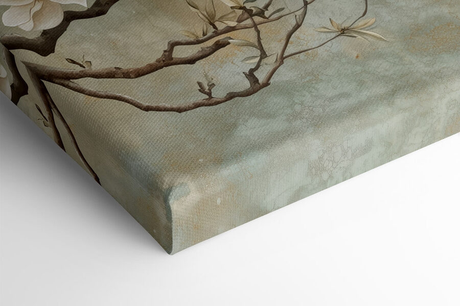 Odmień każdą przestrzeń dzięki temu pięknemu obrazowi na płótnie przedstawiającemu białe kwiaty delikatnie spoczywające na gałęziach. To jak przeniesienie spokojnego ogrodu do wnętrza, idealne do przytulnego kącika lub tętniącego życiem salonu. Wyobraź sobie, że zwijasz się w kłębek z filiżanką herbaty, wpatrując się w te delikatne kwiaty – nagle wszystko wydaje się nieco spokojniejsze. To subtelny ukłon w stronę elegancji natury, zachęcający do spokoju i ciepła. Ponadto delikatne kolory bez trudu dopasują się do każdego stylu wystroju, zarówno nowoczesnego, jak i klasycznego. Każdy zasługuje na odrobinę kwiatowego uroku, nie sądzisz?