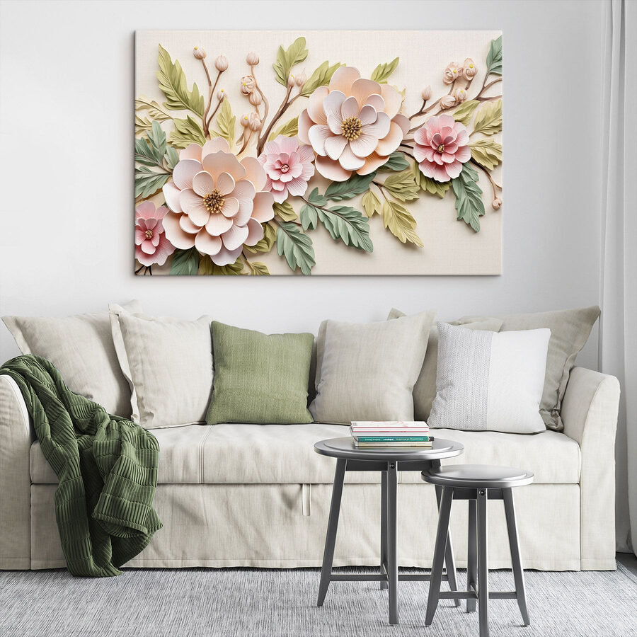 Odmień każdą przestrzeń dzięki zachwycającemu urokowi obrazów na płótnie Paper Flowers and Leaves. Wyobraź sobie, że wchodzisz do pokoju witanego przez bujny ogród, żywe kwiaty delikatnie szepczące opowieści o lecie i spokoju. To jak przeniesienie się na zewnątrz, bez uciążliwych pyłków. Idealny do gołej ściany, która czeka na odrobinę życia, a może do przytulnego kącika, w którym przydałoby się trochę ciepła. Znajomi będą się zatrzymywać i podziwiać, a może nawet pojawią się “ochy” i “achy”. Ponadto te piękne kwiaty nie zwiędną – mowa o niskich kosztach utrzymania!