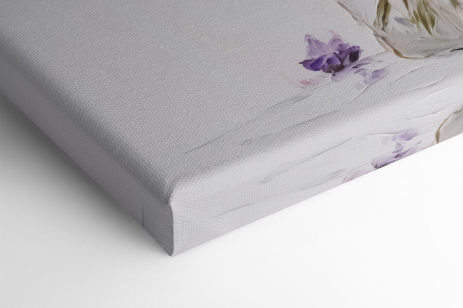 Rozjaśnij każdą przestrzeń dzięki temu wspaniałemu drukowi na płótnie przedstawiającemu delikatne fioletowe kwiaty w szklanym wazonie. To jak posiadanie pięknego ogrodu w domu – nie wymaga podlewania! Wyobraź sobie, że wchodzisz do pokoju i czujesz natychmiastowy przypływ radości dzięki tym żywym kwiatom, idealnym do dodania odrobiny koloru do nudnych ścian. Szepczą elegancję, a jednocześnie czują się przytulnie, jak znajomy uścisk po długim dniu. Niezależnie od tego, czy znajduje się w salonie, czy w uroczym narożniku, ten element może mówić wiele bez słowa. Piękny akcent dla każdego miłośnika kwiatów lub każdego, kto chce rozjaśnić swoją przestrzeń!