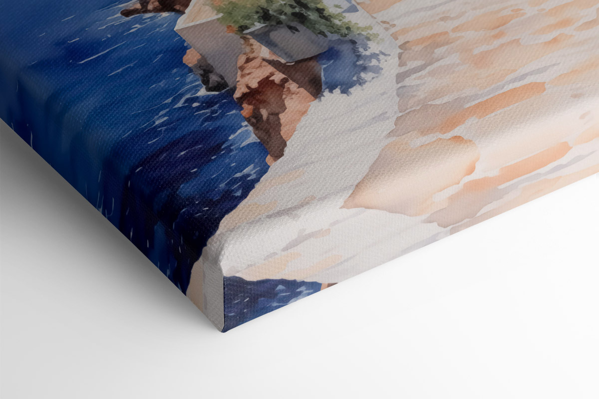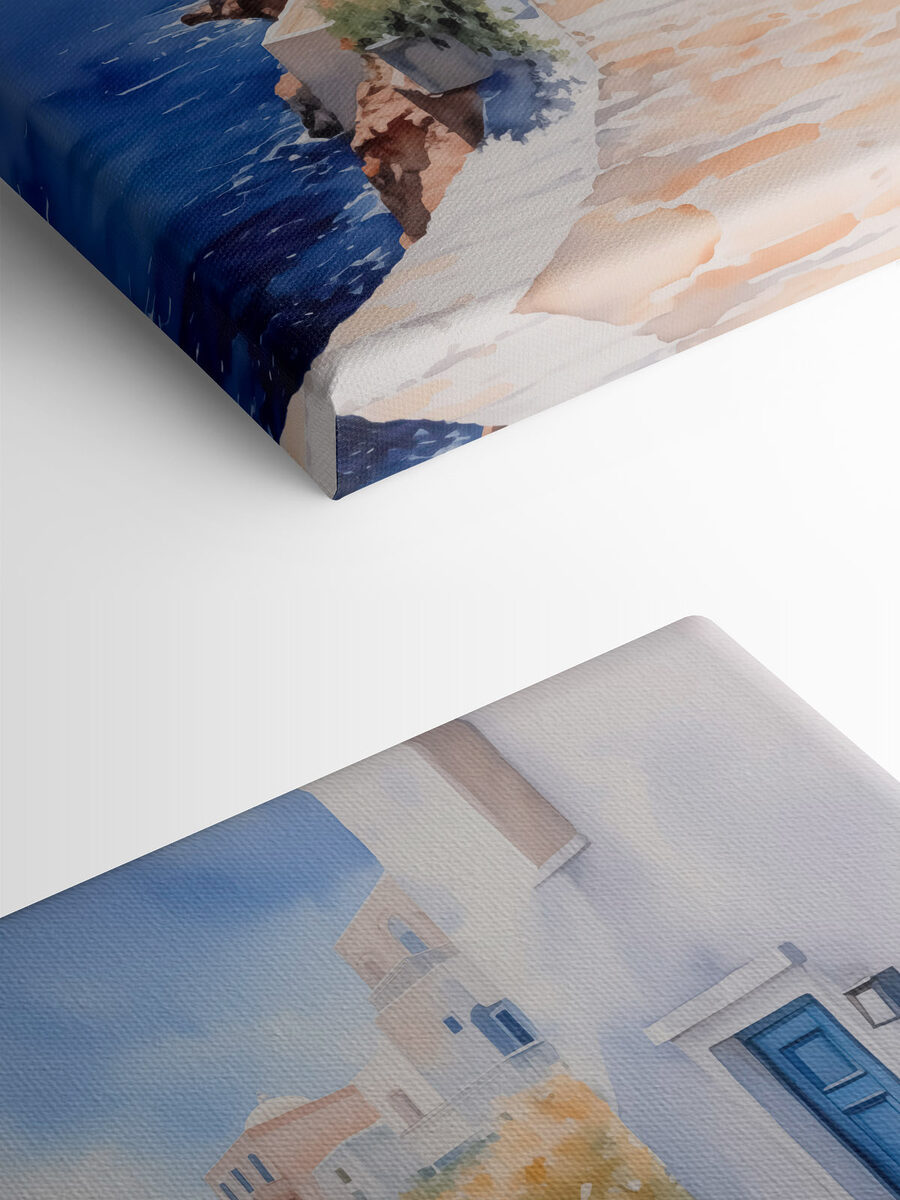 Wyobraź sobie, że wkraczasz w senną scenerię, w której jasny biały budynek spotyka się z żywymi niebieskimi drzwiami i plamami kwiatów. Ten akwarelowy wydruk przenosi kawałek raju prosto do Twojego domu. Umieść go w swoim ulubionym zakątku, a nagle poczujesz się tak, jakby morska bryza szeptała ci do ucha słodkie nuty. Goście mogą poczuć się przeniesieni do uroczego nadmorskiego miejsca, gdzie zmartwienia znikają wraz z przypływem. Niezależnie od tego, czy chodzi o dom na plaży, czy po prostu o dodanie odrobiny koloru do salonu, to płótno jest jak ciepły uścisk. Kto nie pokochałby codziennej dawki słońca?