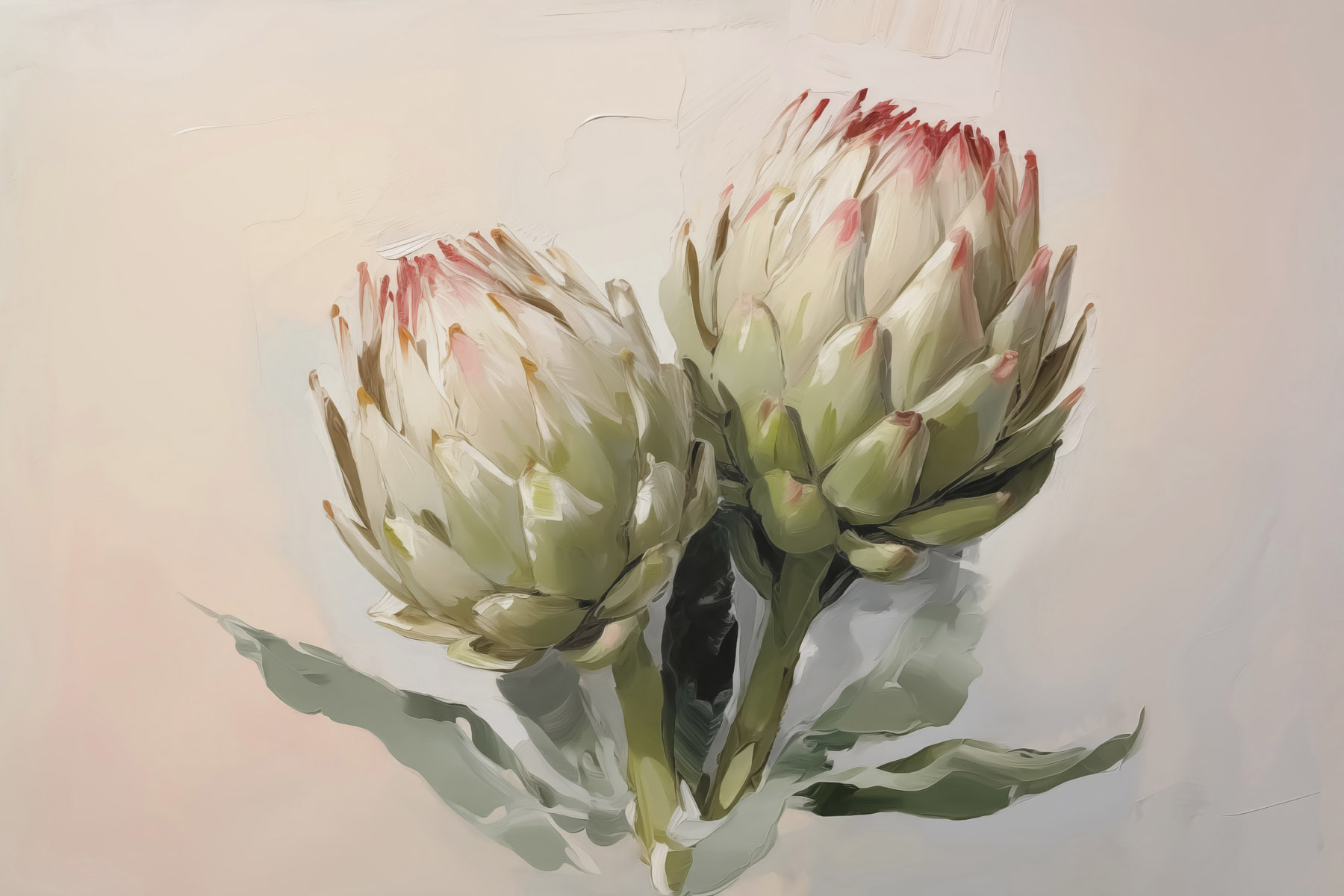 Dodaj odrobinę uroku do każdej przestrzeni dzięki temu wspaniałemu drukowi na płótnie przedstawiającemu karczochy na delikatnym białym tle. To tak, jakby wnieść do wnętrza kawałek natury, przypominając wszystkim, że piękno można znaleźć w najbardziej nieoczekiwanych miejscach. Wyobraź sobie, że wylegujesz się w swoim salonie, popijając herbatę i pozwalając subtelnym kolorom tej grafiki inspirować marzenia o słonecznych ogrodach i kulinarnych przygodach. Jest to idealne rozwiązanie dla każdego, kto kocha wyjątkowe dekoracje, które opowiadają historię. Ponadto karczochy są znane ze swojej serdeczności, dzięki czemu ten kawałek jest świetnym początkiem rozmowy. Kto by pomyślał, że warzywa mogą być tak stylowe?