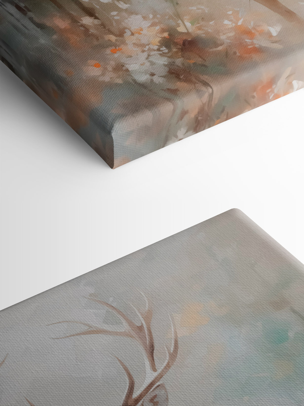 Odmień swoją przestrzeń za pomocą tego czarującego wydruku na płótnie przedstawiającego jelenia stojącego dumnie wśród miękkich leśnych odcieni i delikatnych kwiatów. Wyobraź sobie, że budzisz się w tej spokojnej scenerii, w której piękno natury płynnie wtapia się w Twój codzienny widok. Wzbudza ona poczucie spokoju, zachęcając do marzeń o wędrówkach przez spokojne lasy. To majestatyczne stworzenie z imponującym porożem wnosi odrobinę dzikiej przyrody do salonu. Idealny dla każdego, kto chce dodać odrobinę osobowości do swoich ścian, szepcze historie o lesie – kto nie poczułby się zainspirowany?
