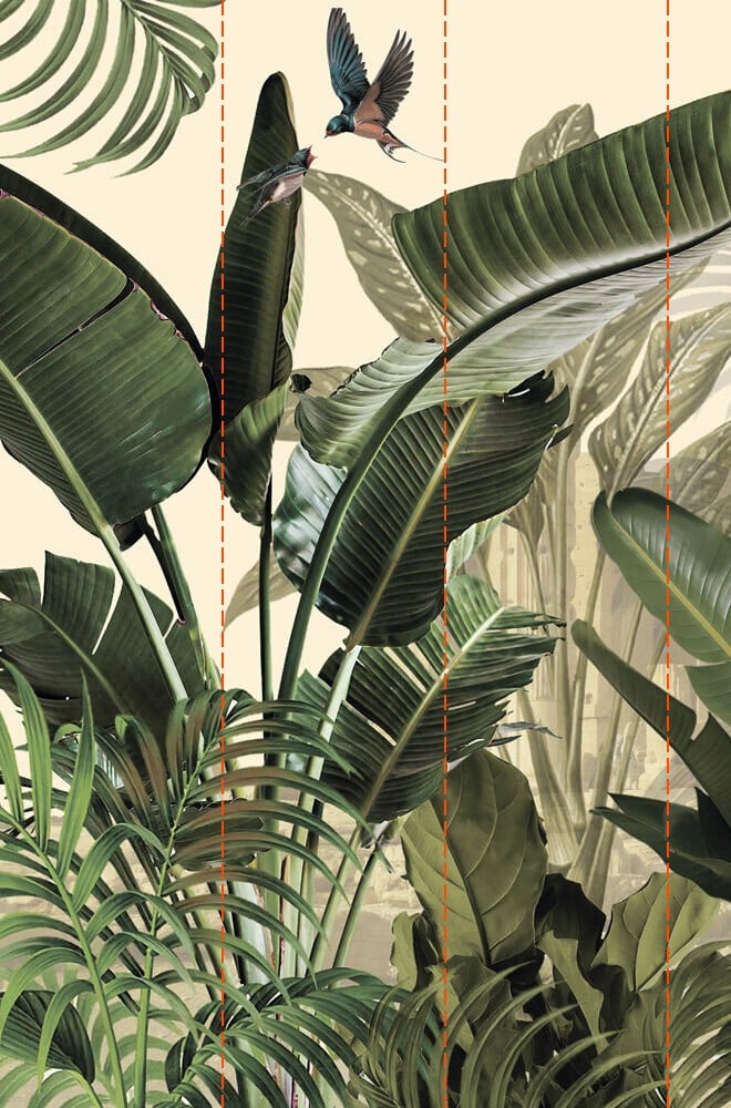 Fototapeta Tropikalne liście i ptaki w harmonii