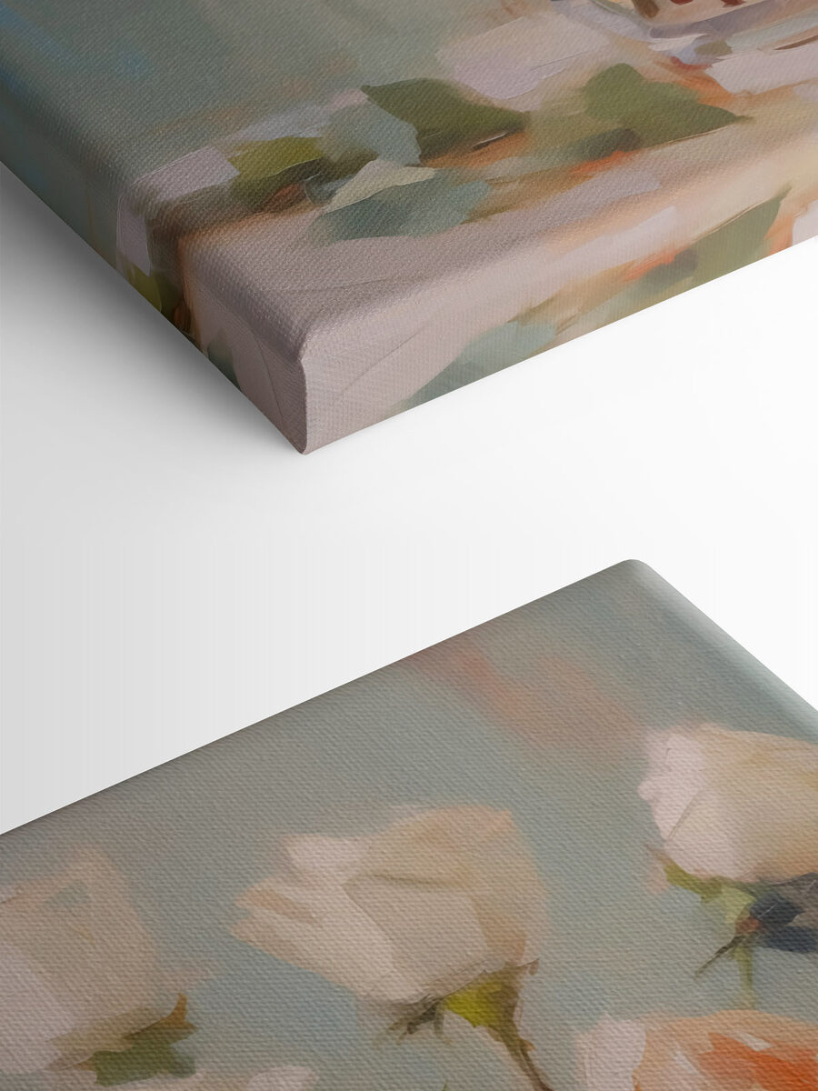 Rozjaśnij swoją przestrzeń dzięki temu uroczemu drukowi na płótnie przedstawiającemu wazon z białymi różami. To jak posiadanie małego ogrodu w domu, bez konieczności konserwacji. Wyobraź sobie to delikatne kwiatowe piękno na ścianie, zachęcające wszystkich do zatrzymania się i uśmiechu. Delikatne kolory tworzą spokojną atmosferę, idealną do wylegiwania się z książką lub popijania kawy w leniwe poranki. Dodatkowo, nie ma szans na kichanie z powodu pyłków! Zawieś go w salonie, sypialni, a nawet w małym zakątku, który potrzebuje odrobiny życia. To zachwycający akcent, który mówi: “Hej, doceniam piękno”. Kto by tego nie pokochał?