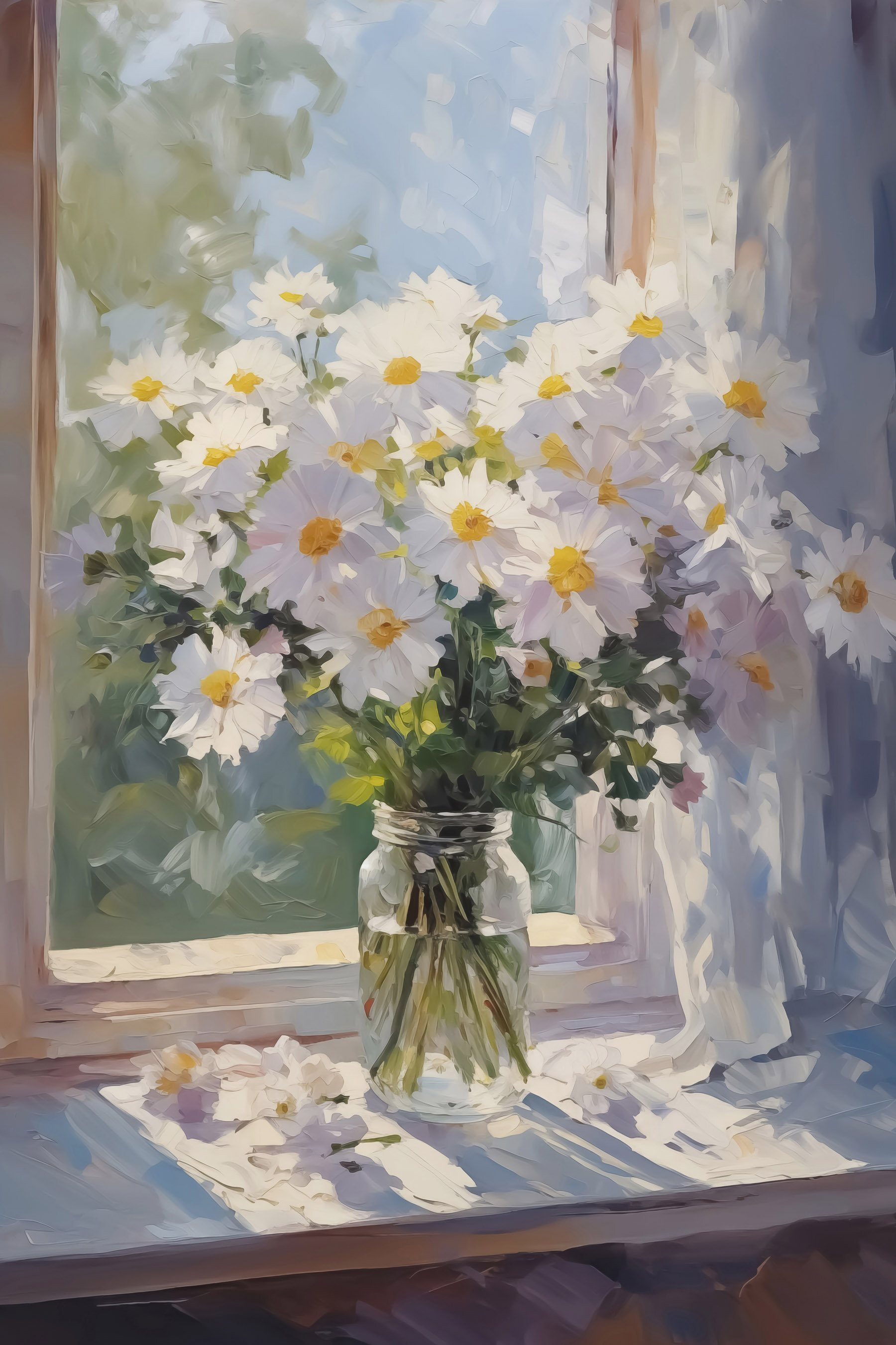Rozjaśnij każde pomieszczenie tym uroczym obrazem na płótnie przedstawiającym kwiaty w szklanym słoju. Wyobraź sobie słoneczny poranek, delikatne kołysanie płatków na wietrze, podczas gdy kojące kolory wprowadzają odrobinę ciepła na ściany. Ten obraz to nie tylko dzieło sztuki; jest jak mały ogród, który zaprasza do środka, sprawiając, że każda chwila staje się nieco spokojniejsza. Idealny do przytulnego kącika lub pustego miejsca, w którym inspiracja wydaje się ukrywać, bez wysiłku łączy piękno natury z pocieszającą atmosferą domu. Kto by pomyślał, że kwiaty mogą wywoływać taką radość?