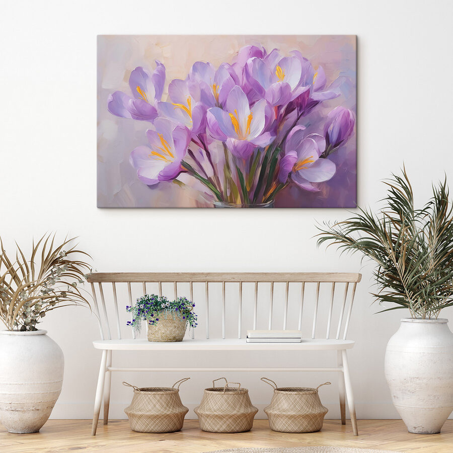 Rozjaśnij każde pomieszczenie dzięki temu wspaniałemu drukowi na płótnie przedstawiającemu kwiaty w delikatnych odcieniach. Wyobraź sobie, że wchodzisz do pomieszczenia, w którym czujesz się jak wiosną, niezależnie od pory roku na zewnątrz. Te piękne kwiaty tańczą na płótnie, zachęcając do uśmiechu i ciepłych wibracji. To tak, jakby mieć mały skrawek natury w swoim salonie, oferujący delikatne przypomnienie, aby zatrzymać się i powąchać – cóż, cokolwiek to jest. Idealny do przytulnych zakątków lub minimalistycznych ścian, ten element dodaje uroku bez przytłaczania zmysłów. Przynieś do domu odrobinę kwiatowej radości, która szepcze relaks za każdym razem, gdy na nią spojrzysz.