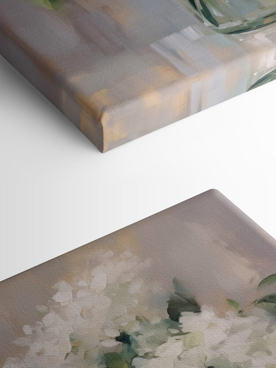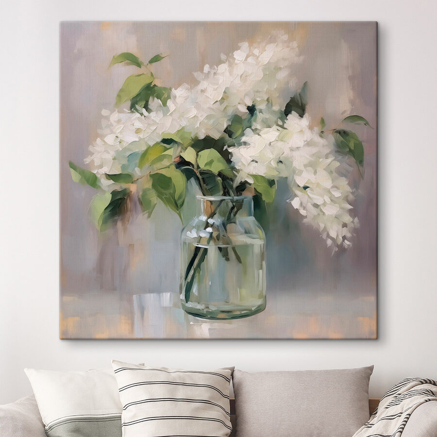 Wyobraź sobie przytulny kącik w swoim domu, w którym ten piękny wydruk na płótnie może rozjaśnić wszystko. Bukiet białych kwiatów w prostym szklanym słoiku to idealne połączenie świeżości i spokoju. Wyobraź sobie ten obraz wiszący na ścianie – natychmiastowy urok! Szepcze elegancję bez zbytniego starania się, coś jak przyjaciel, który zawsze wygląda na zadbanego, ale udaje mu się to bez wysiłku. Ten kwiatowy element nie tylko dodaje wystroju; wnosi ciepło do każdej przestrzeni. Poczuj spokój, popijając kawę i wpatrując się w te spokojne kwiaty. Kto nie chciałby takiej atmosfery?