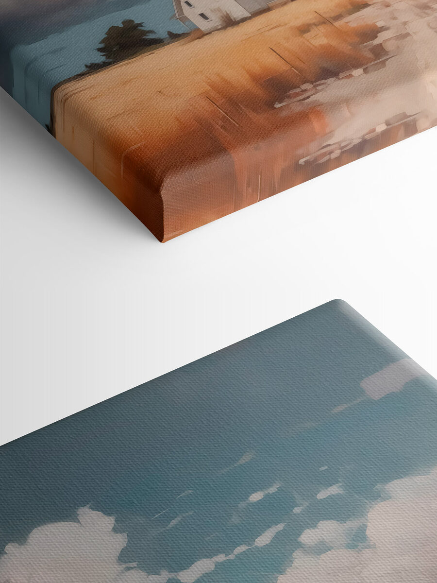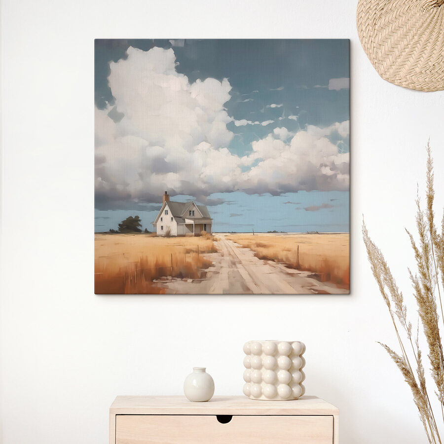 Wyobraź sobie, że każdego dnia budzisz się na widok uroczego domu położonego na złotym polu pod sennym, wypełnionym chmurami niebem. Ten wydruk na płótnie przenosi tę pogodną atmosferę bezpośrednio do Twojej przestrzeni, czyniąc ją idealnym punktem centralnym dla każdego pomieszczenia. Jest jak powiew świeżego wiejskiego powietrza, zapraszając do przytulnych, wyluzowanych uczuć. Wyobraź sobie, jak popijasz poranną kawę, zatracając się w rozległym niebie i delikatnym kołysaniu złotych traw. To nie tylko sztuka; to nastrój, mała ucieczka od zgiełku życia. Idealny do dodania ciepła i charakteru, ten element sprawi, że goście będą pytać, gdzie znalazłeś tak wyjątkowy klejnot. Odrobina natury, odrobina nostalgii i całe mnóstwo uroku – czego tu nie kochać?