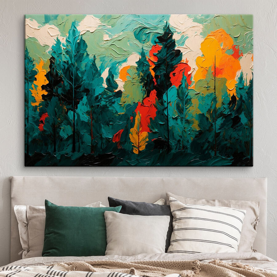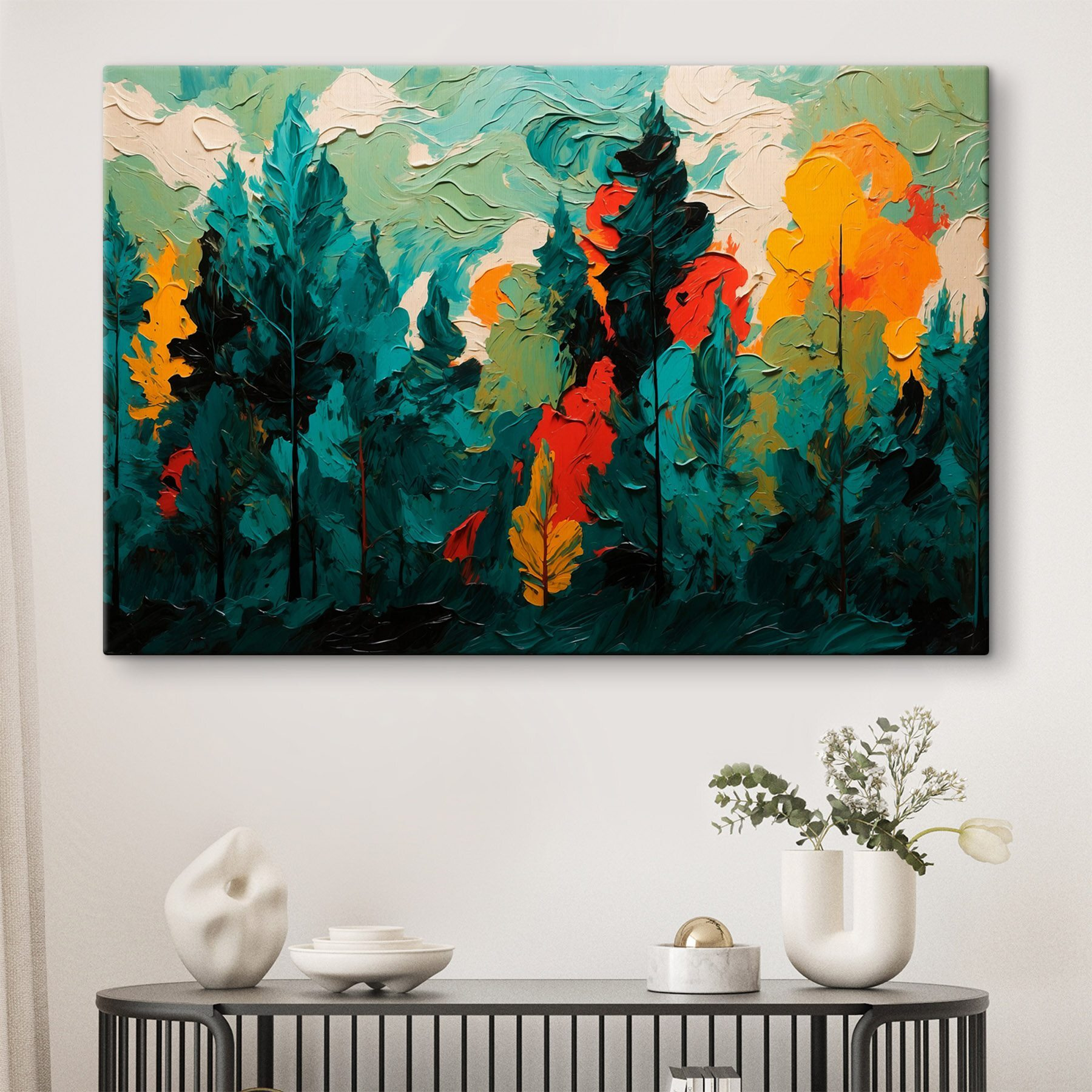 Odmień swoją przestrzeń dzięki temu urzekającemu drukowi na płótnie, przedstawiającemu żywy obraz drzew skąpanych w słońcu. Wyobraź sobie, że wchodzisz do pokoju i bum – wita Cię ta eksplozja kolorów! Bogate zielenie zmieszane z ognistymi pomarańczami i żółciami wprowadzają piękno natury do wnętrza, sprawiając, że każdy dzień przypomina spacer po rozświetlonym słońcem lesie. Idealny do przytulnych zakątków lub ścian wymagających uwagi, szepcze spokój, dodając jednocześnie odrobinę artystycznego stylu. Szczerze mówiąc, kto nie poczułby się nieco lżej patrząc na nią? Idealny dla miłośników natury i każdego, kto chce wnieść odrobinę radości do swojego wystroju!