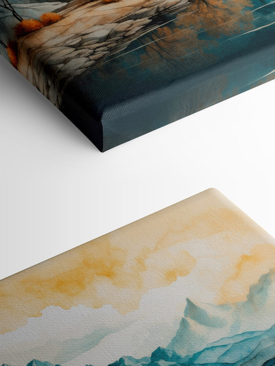 Przekształć dowolną ścianę w senną ucieczkę dzięki temu akwarelowemu arcydziełu. Wyobraź sobie, że zatapiasz się w spokojnej scenerii jeziora, gdzie żywe jesienne drzewa flirtują z rześkimi błękitnymi wodami. Te góry w tle? Praktycznie szepczą słodkie sekrety natury. Wyobraź to sobie w przytulnym salonie lub oświetlonym słońcem korytarzu, tworząc ciepło i zachęcając do uśmiechu. To tak, jakby mieć kawałek wspaniałej przyrody w swoim wnętrzu, bez komarów. Idealne dla marzycieli i poszukiwaczy przygód, to płótno jest rodzajem wystroju, który po prostu czuje się dobrze.