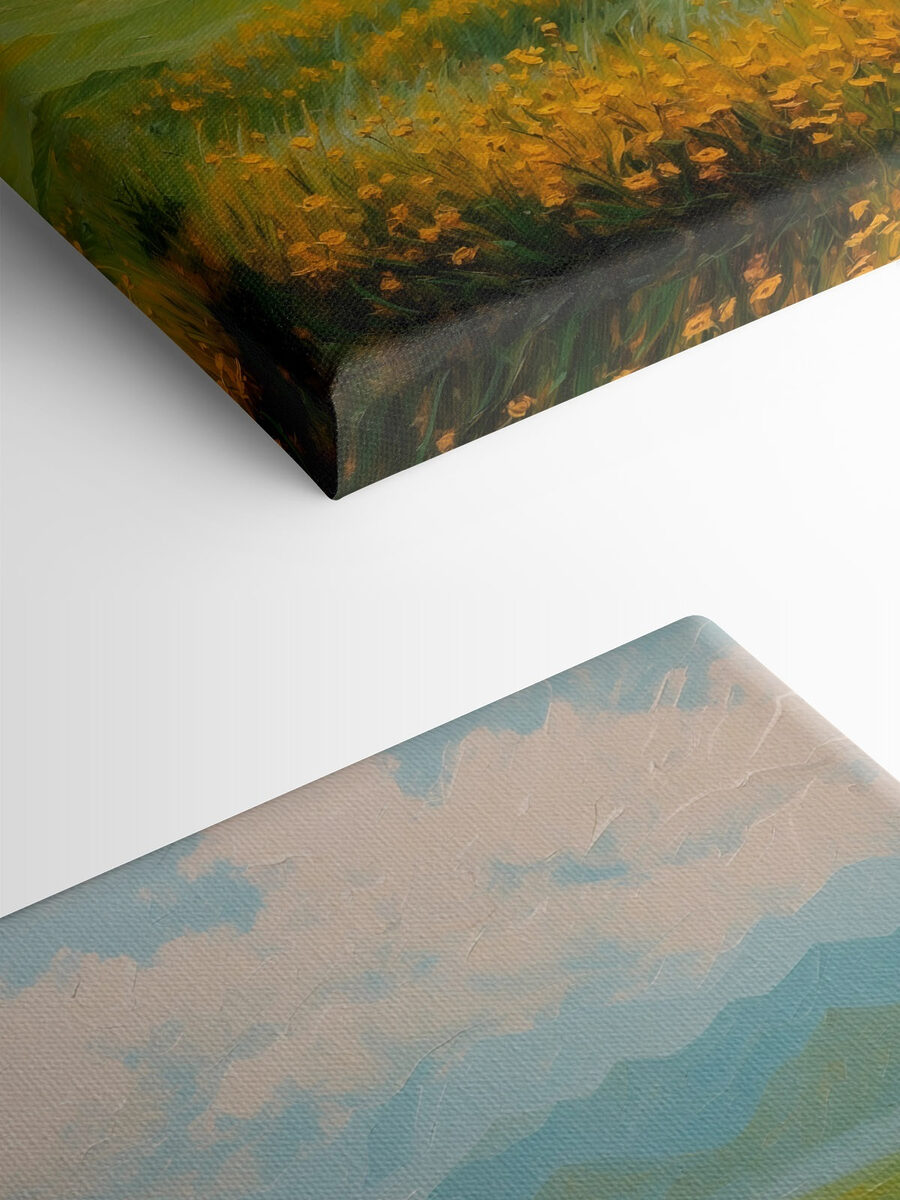 Wyobraź sobie, że wkraczasz na oświetlone słońcem pole, otoczone żywymi kwiatami tańczącymi na wietrze. Ten piękny wydruk na płótnie przenosi to uczucie bezpośrednio do pokoju. Z majestatycznymi górami w oddali i delikatnymi odcieniami natury, to tak, jakby mieć kawałek wspaniałej przyrody wiszącej na ścianie. Idealny do rozjaśnienia przytulnego kącika lub dodania odrobiny koloru do neutralnej przestrzeni. Możesz po prostu marzyć o leniwych popołudniach, podczas których jedyną rzeczą w porządku obrad jest popijanie herbaty i oglądanie chmur bawiących się w chowanego. Miłośnicy natury pokochają ten przedmiot, ale szczerze mówiąc, kto nie chciałby uciec do tak spokojnego widoku bez wychodzenia z domu?