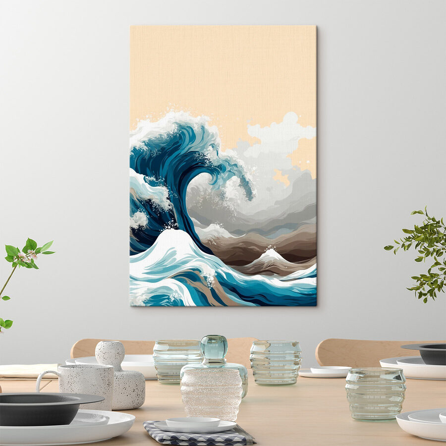 Przenieś ocean do swojego salonu dzięki temu wspaniałemu obrazowi na płótnie przedstawiającemu dużą falę. Obraz ten oddaje dramatyzm i piękno natury dzięki zawirowaniom głębokiego turkusu i spienionej bieli, dzięki czemu będzie ozdobą każdej ściany. Wyobraź sobie, że popijasz poranną kawę, wpatrując się w nią, czując pęd fal – bez piaszczystych palców u stóp! Idealny dla miłośników plaży lub każdego, kto potrzebuje odrobiny spokoju w domu, przynosi poczucie spokoju i inspiracji. Kto nie pokochałby odrobiny oceanicznych wibracji przez cały dzień?