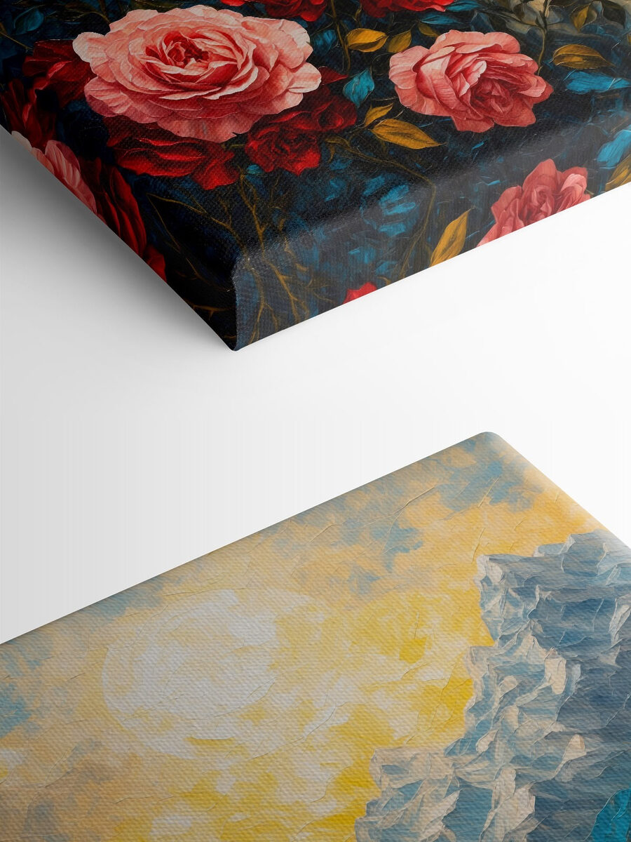 Tchnij życie w każde pomieszczenie dzięki temu wspaniałemu obrazowi na płótnie przedstawiającemu kwiaty i góry. To tak, jakby natura postanowiła urządzić przyjęcie – róże w pełnym rozkwicie witają cię, podczas gdy majestatyczne szczyty stoją na straży w tle. Wyobraź sobie, że popijasz poranną kawę, czując inspirację żywymi kolorami i rozległymi krajobrazami. Ten element uchwyci idealny moment, wskazując na przygodę tuż za drzwiami. To łatwy sposób na dodanie uroku i ciepła bez kłopotliwej pracy w ogrodzie. Idealny dla tych, którzy cenią piękno, nawet jeśli mogą zabić kaktusa.