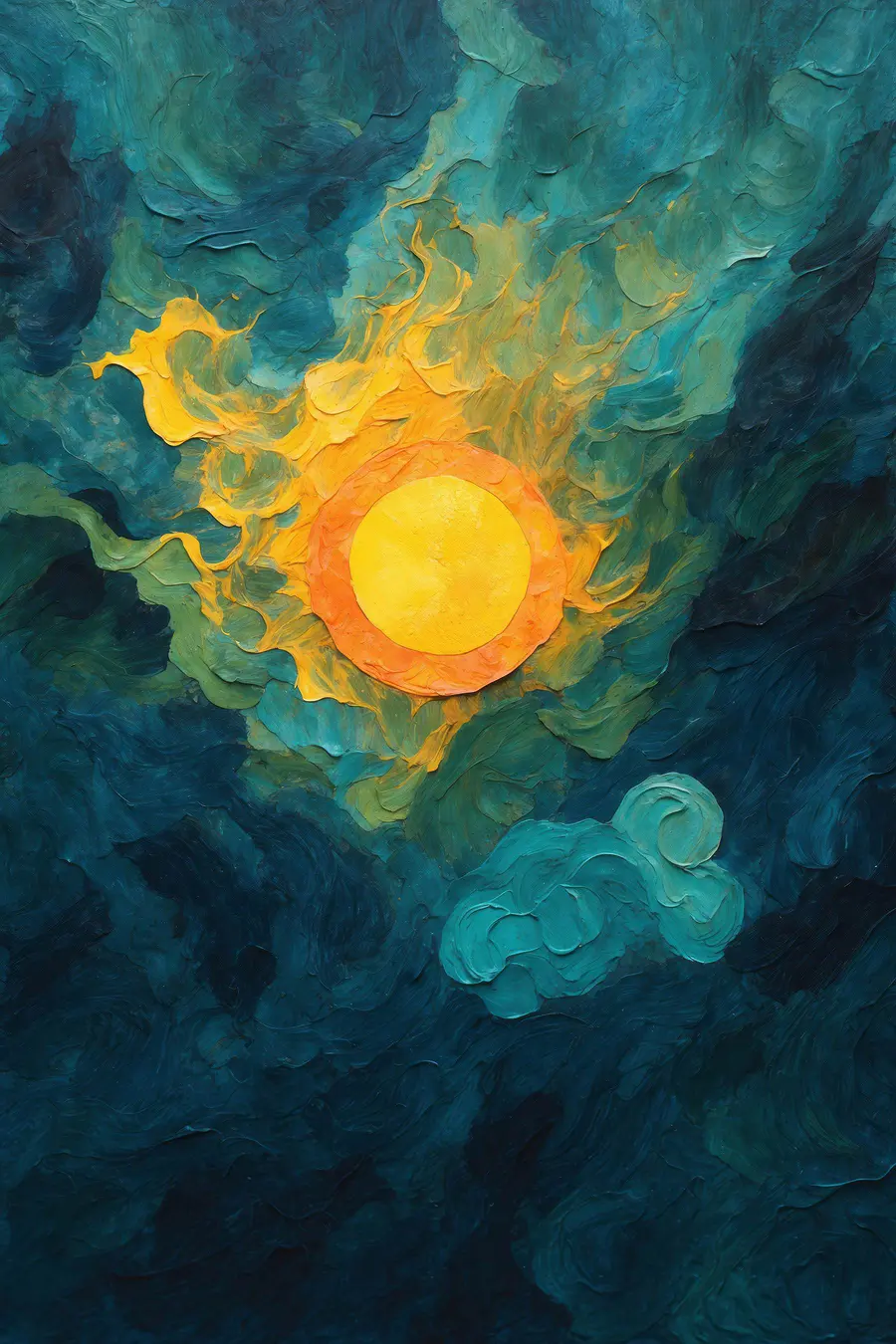 Podnieś swoją przestrzeń dzięki temu oszałamiającemu wydrukowi na płótnie, tętniącemu życiem tańcowi słońca i chmur, który pobudza wyobraźnię. Wyobraź sobie, że rozjaśnia przytulny kącik lub tworzy wesoły element centralny w salonie – natychmiast poprawia nastrój. Ciepłe żółcie reprezentują figlarne słońce, przynosząc odrobinę radości, podczas gdy wirujące błękity i zielenie sugerują poczucie spokoju. To jak uchwycenie idealnego nieba podczas leniwego popołudnia. Idealny dla tych, którzy cenią sztukę abstrakcyjną, ten obraz zachęca do marzeń i uśmiechu za każdym razem, gdy przyciąga wzrok.