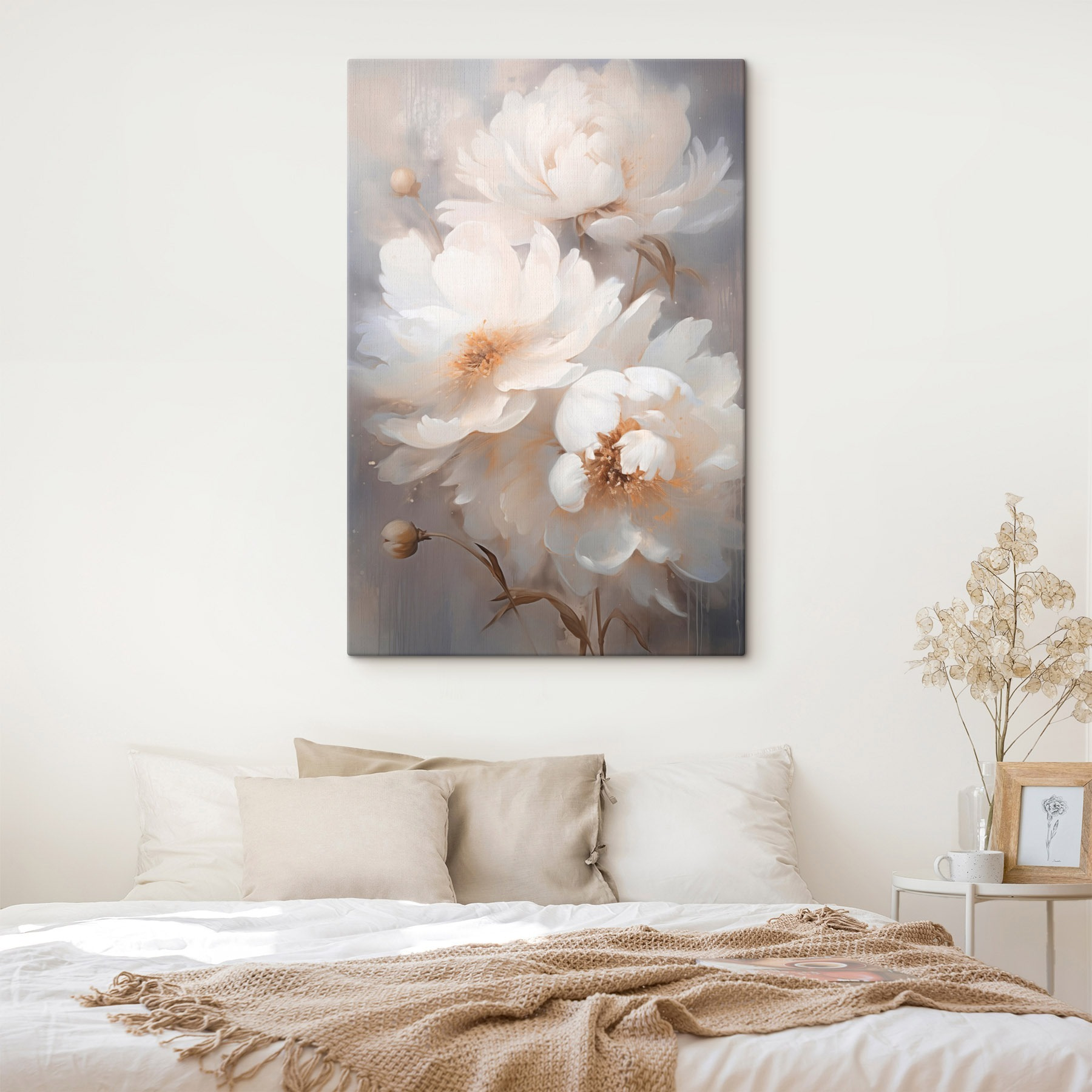 Wnieś powiew świeżości do każdego pomieszczenia dzięki temu wspaniałemu obrazowi na płótnie przedstawiającemu białe kwiaty. To tak, jakby mieć mały ogród kwitnący na ścianie, bez konewki. Miękkie kolory i delikatne pociągnięcia pędzla tworzą uspokajającą atmosferę, idealną na chwile, gdy życie staje się zbyt gorączkowe. Wyobraź sobie, że popijasz herbatę na kanapie, relaksując się i podziwiając to piękno. Z pewnością wywoła uśmiech i komplementy od odwiedzających. Co więcej, pasuje ona do wszystkich stylów wystroju wnętrz – nie jest tu potrzebna żadna wiedza z zakresu aranżacji wnętrz! Wspaniały dodatek, który emanuje elegancją i ciepłem.