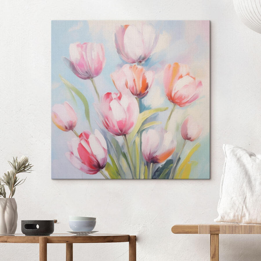 Wnieś świeżość wiosny do każdego pomieszczenia dzięki temu wspaniałemu drukowi na płótnie przedstawiającemu różowe i białe tulipany. Wygląda to jak wesołe przyjęcie w ogrodzie uchwycone w słoneczny dzień – te miękkie kwiaty wydają się delikatnie kołysać z niewidzialną bryzą. Wyobraź sobie, że przechodzisz obok i dostrzegasz je; to prawie tak, jakby machały na powitanie. Idealna do rozjaśnienia przytulnego kącika do czytania lub dodania odrobiny koloru do jadalni, ta grafika nie tylko tam siedzi – to zaproszenie do uśmiechu. Kto by pomyślał, że tulipany mogą być tak zachęcające? To tak, jakby mieć mały kawałek natury w domu, nawet jeśli pogoda na zewnątrz nie jest idealna. Wystarczy je powiesić i obserwować, jak zmienia się przestrzeń. Proste, eleganckie i czarujące bez wysiłku!