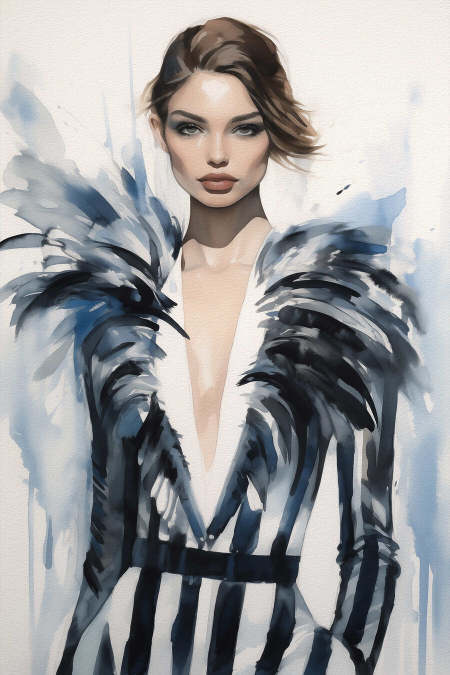 Wejdź do świata szyku z tym wspaniałym wydrukiem na płótnie przedstawiającym kobietę w czarno-białej sukience. Jest to jeden z tych elementów, które natychmiast przyciągają uwagę, dzięki czemu jest idealny dla każdego, kto chce urozmaicić swoją przestrzeń. Wyobraź go sobie w przytulnym salonie, pobudzając do rozmów, a może nawet do marzeń. Odważne linie i wdzięczna sylwetka wywołują poczucie elegancji, które w jakiś sposób jest świeże – jak powiew powietrza w słoneczny dzień. Z każdym spojrzeniem odkrywa nowe warstwy artyzmu. Idealny na ścianę, która potrzebuje odpowiedniego akcentu!