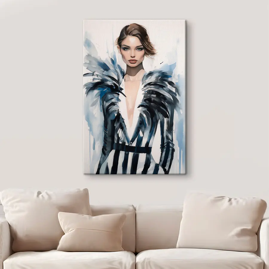 Wejdź do świata szyku z tym wspaniałym wydrukiem na płótnie przedstawiającym kobietę w czarno-białej sukience. Jest to jeden z tych elementów, które natychmiast przyciągają uwagę, dzięki czemu jest idealny dla każdego, kto chce urozmaicić swoją przestrzeń. Wyobraź go sobie w przytulnym salonie, pobudzając do rozmów, a może nawet do marzeń. Odważne linie i wdzięczna sylwetka wywołują poczucie elegancji, które w jakiś sposób jest świeże – jak powiew powietrza w słoneczny dzień. Z każdym spojrzeniem odkrywa nowe warstwy artyzmu. Idealny na ścianę, która potrzebuje odpowiedniego akcentu!
