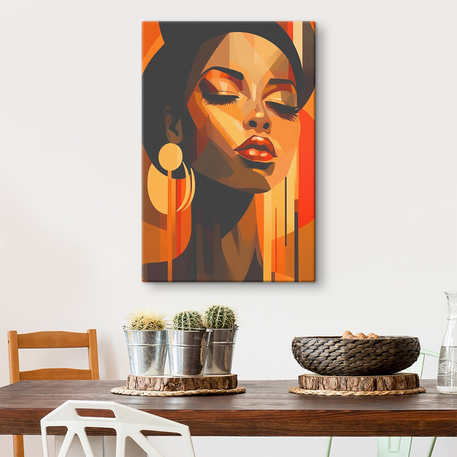 Ten elegancki portret w żywych odcieniach przeniesie Cię do świata ciepłych, przytulnych wibracji. Wyobraź sobie, że wisi nad kanapą, natychmiast rozjaśniając pomieszczenie i podnosząc na duchu, jak pierwszy łyk kawy w chłodny poranek. Bogate odcienie ożywają, tworząc opowieści o komforcie i kreatywności. Pobudza do rozmowy, być może o sztuce, życiu lub o tym, jak ktoś próbował opanować sztukę malowania i skończył z kolorową katastrofą. Idealne do dodania osobowości, to płótno jest czymś więcej niż dekoracją; to ciepły uścisk na ścianę. Przyjmij to piękno!