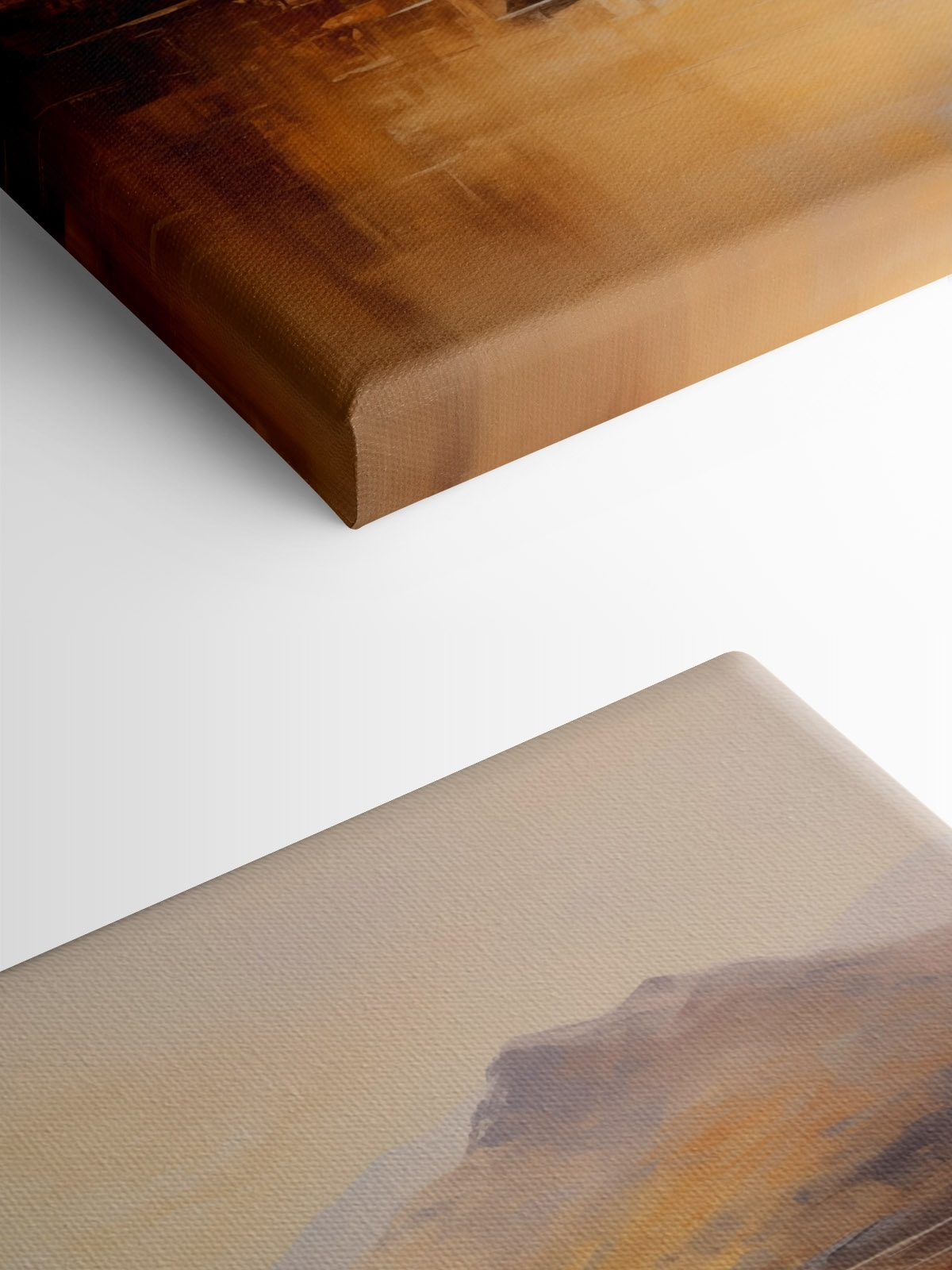 Wyobraź sobie, że jesteś nad spokojnym jeziorem, otoczony majestatycznymi górami, z delikatnym blaskiem zachodu słońca odbijającym się od wody. Ten wydruk na płótnie doskonale oddaje ten senny moment. Wyobraź sobie dwoje ludzi cieszących się spokojem, być może dzielących się historiami lub po prostu chłonących to wszystko. Wnosi przytulną, ciepłą atmosferę do każdej przestrzeni. Niezależnie od tego, czy jest to salon, domowe biuro, czy nawet cichy kącik do czytania, ten obraz zachęca do spokoju i kontemplacji. Poza tym, kto nie chciałby mieć okna na naturę, gdy utknął w środku? To jak mały kawałek spokoju na ścianie!