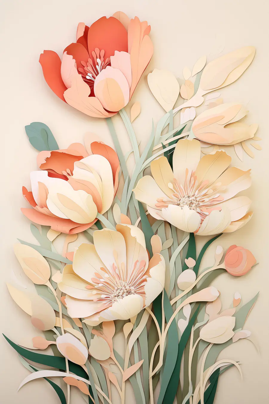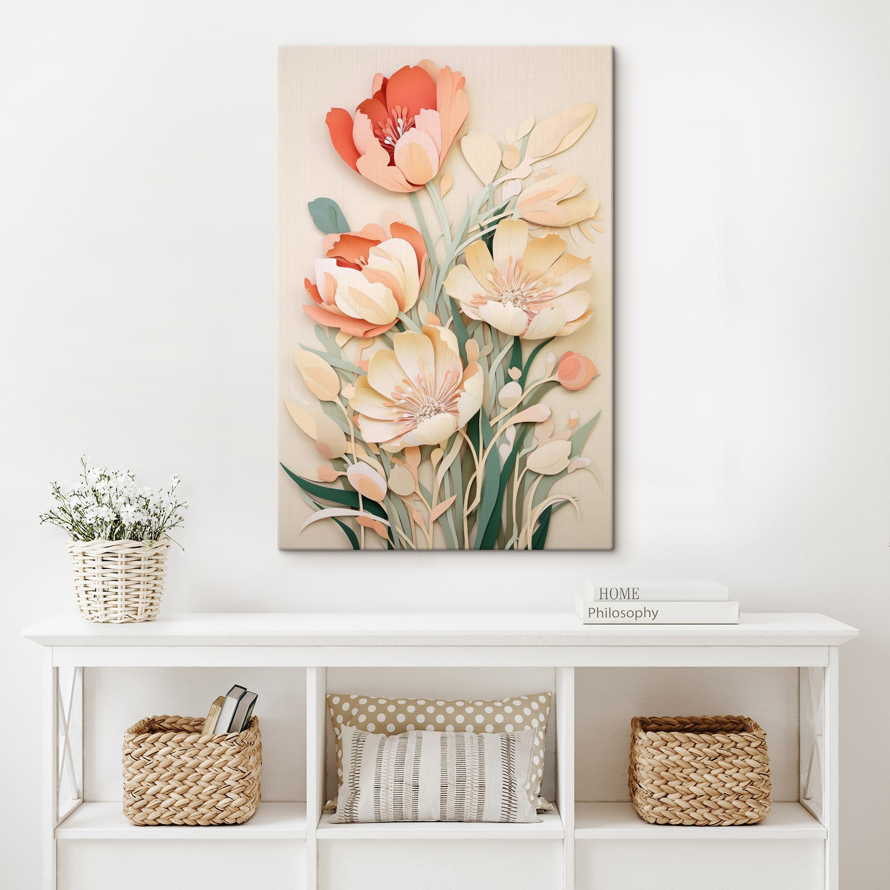 Odmień każdą przestrzeń dzięki temu czarującemu wydrukowi na płótnie, przedstawiającemu piękne kwiaty wycinane z papieru, które wprowadzają odrobinę natury do wnętrza. Wyobraź sobie, że wchodzisz do swojego pokoju i czujesz falę spokoju, gdy te żywe kwiaty tańczą na ścianie, szepcząc wiosenne wibracje przez cały rok. Idealne do ożywienia salonu lub dodania figlarnego akcentu do sypialni, to jak posiadanie osobistego ogrodu bez kłopotliwego podlewania. Znajomi będą się zastanawiać, jak można osiągnąć taki urok bez wysiłku. To nie tylko dekoracja; to zaproszenie do zatrzymania się i powąchania – lub w tym przypadku, podziwiania – kwiatów.