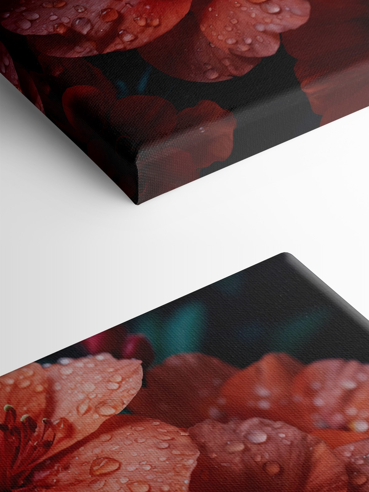 Rozjaśnij każde pomieszczenie dzięki temu wspaniałemu drukowi na płótnie przedstawiającemu czerwone kwiaty zanurzone w kroplach wody. To jak przeniesienie kawałka natury do wnętrza, bez alergii na pyłki. Wyobraź sobie, że wchodzisz do swojego salonu i czujesz ten świeży, wiosenny klimat przez cały rok. Żywe kolory po prostu rzucają się w oczy na tle neutralnej ściany, sprawiając, że jest to świetny sposób na rozpoczęcie rozmowy. Niezależnie od tego, czy jest to przytulny kącik do czytania, czy zachęcająca przestrzeń jadalna, to dzieło sztuki dodaje idealnego odrobiny ciepła. Ponadto przypomina, że piękno może rozwijać się nawet w najbardziej deszczowych warunkach. Kto by tego nie pokochał?