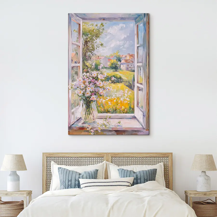 Wyobraź sobie, że budzisz się w słoneczny poranek, gdy wita Cię ten piękny wydruk na płótnie. To jak zaproszenie słodkiego kawałka natury do swojej przytulnej przestrzeni. Szeroko otwarte okno ukazuje bukiet żywych kwiatów wygrzewających się w słońcu, a za nim rozciąga się bujna łąka. Ten element bez wysiłku dodaje uroku i ciepła każdemu pomieszczeniu, sprawiając, że czuje się ono bardziej żywe. Wyobraź go sobie w uroczej kawiarni lub słonecznym domowym biurze – Twoi goście z pewnością zatrzymają się i będą go podziwiać. To rodzaj sztuki, która szepcze: “Zrelaksuj się, jesteś teraz w domu”. Idealny do marzeń na jawie lub po prostu cieszenia się chwilą!