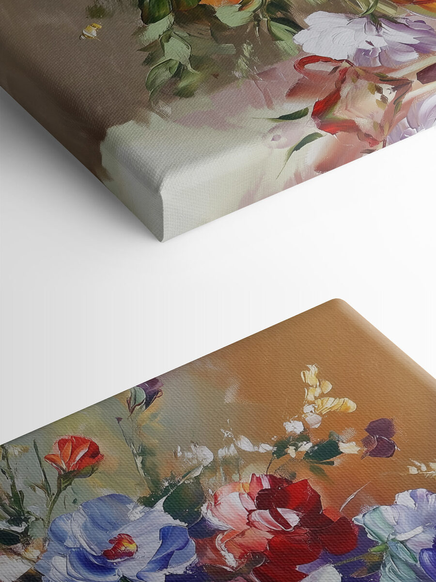 Rozjaśnij każde pomieszczenie tym zachwycającym wydrukiem na płótnie przedstawiającym żywy bukiet kwiatów w wazonie – idealny dla tych, którzy nie mogą utrzymać prawdziwych kwiatów przy życiu! Wyobraź sobie, że wchodzisz do swojego pokoju i wita Cię feeria barw i radości. Zabawna mieszanka kwiatów wnosi odrobinę natury do wnętrza, dzięki czemu jest świetnym początkiem rozmowy. To tak, jakby ogród postanowił uwolnić się i zatańczyć na ścianie. Niezależnie od tego, czy jest to salon, czy przytulny kącik, w którym popijasz kawę, ten nadruk tworzy zachęcającą atmosferę, która po prostu dobrze się czuje. Kto nie potrzebuje od czasu do czasu odrobiny kwiatowej magii?