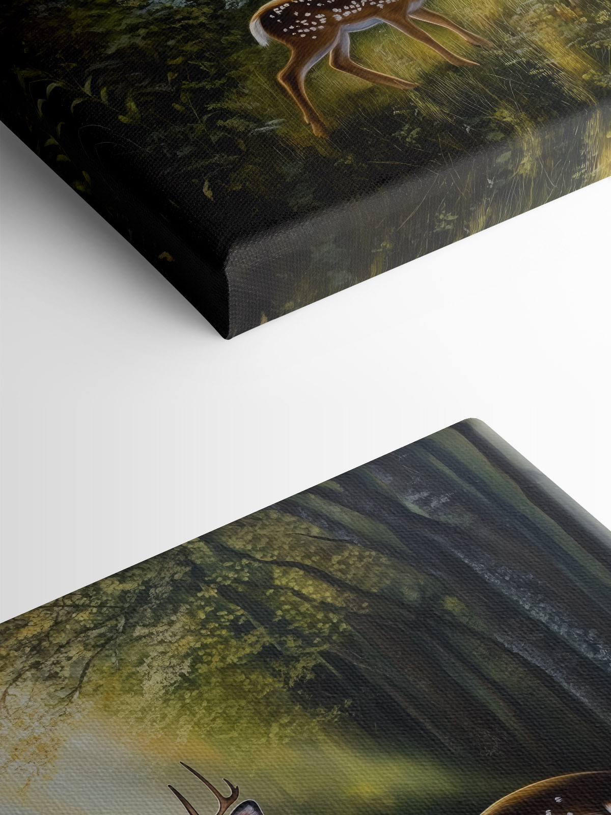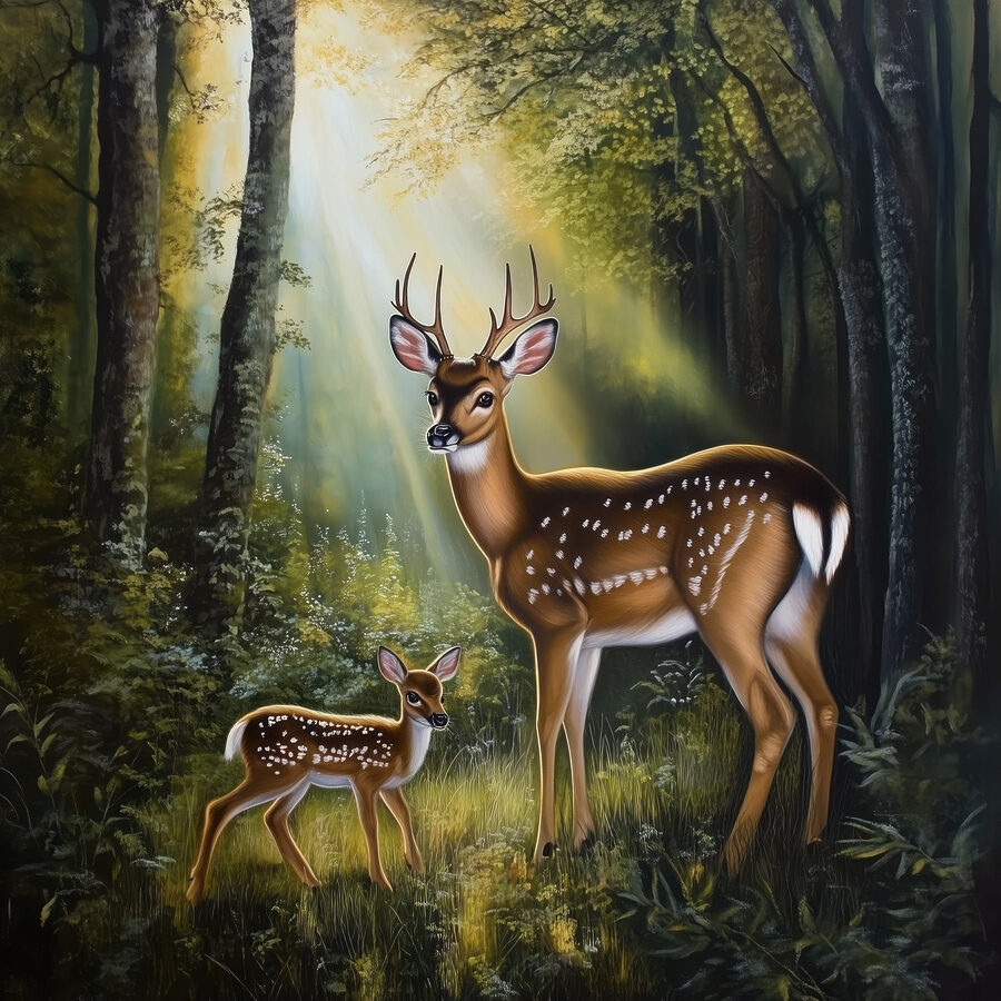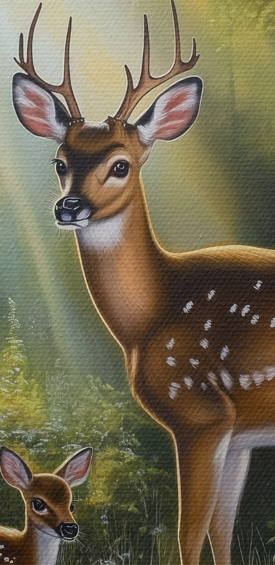 Odmień swoją przestrzeń dzięki temu czarującemu obrazowi na płótnie “Deer in the Woods”. Wyobraź to sobie teraz: dwa wdzięczne jelenie stojące w rozświetlonym słońcem lesie, zapraszające poczucie spokoju i inspiracji wprost do Twojego domu. Ten obraz oddaje ciche piękno natury, dzięki czemu idealnie nadaje się do każdego pomieszczenia, które pragnie odrobiny spokoju.
