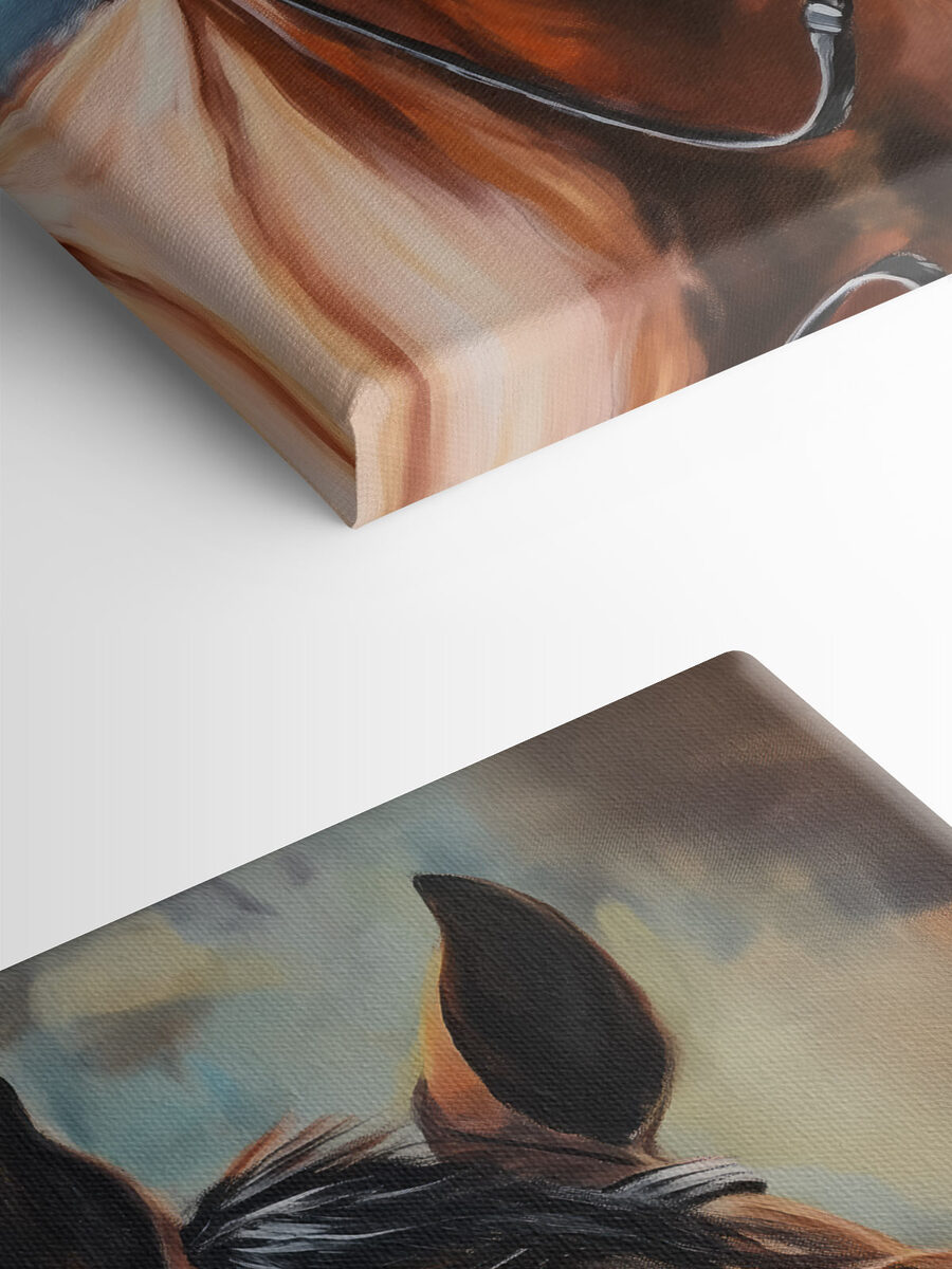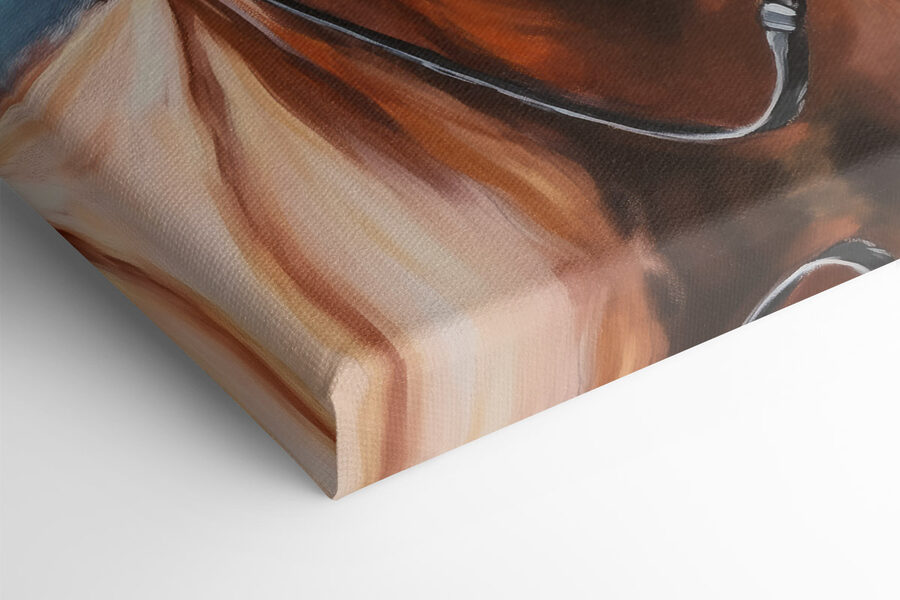 Wyobraź sobie, że wchodzisz do pokoju i wita Cię uduchowione spojrzenie konia, uchwycone w całym jego pięknie. Ten obraz na płótnie przedstawiający konia to nie tylko sztuka; to chwila zatrzymana w czasie, w której elegancja łączy się z siłą. Wyobraź sobie, że wisi nad przytulną sofą lub w korytarzu, bez wysiłku wywołując rozmowy. Ciepłe odcienie przyciągają wzrok, niemal zapraszając do marzeń o rozległych polach i galopujących przygodach. Jest to rodzaj elementu, który wnosi do przestrzeni poczucie spokoju i odrobinę dzikiego ducha. Idealny dla miłośników zwierząt lub każdego, kto po prostu docenia oszałamiający wystrój, który czuje się żywy.