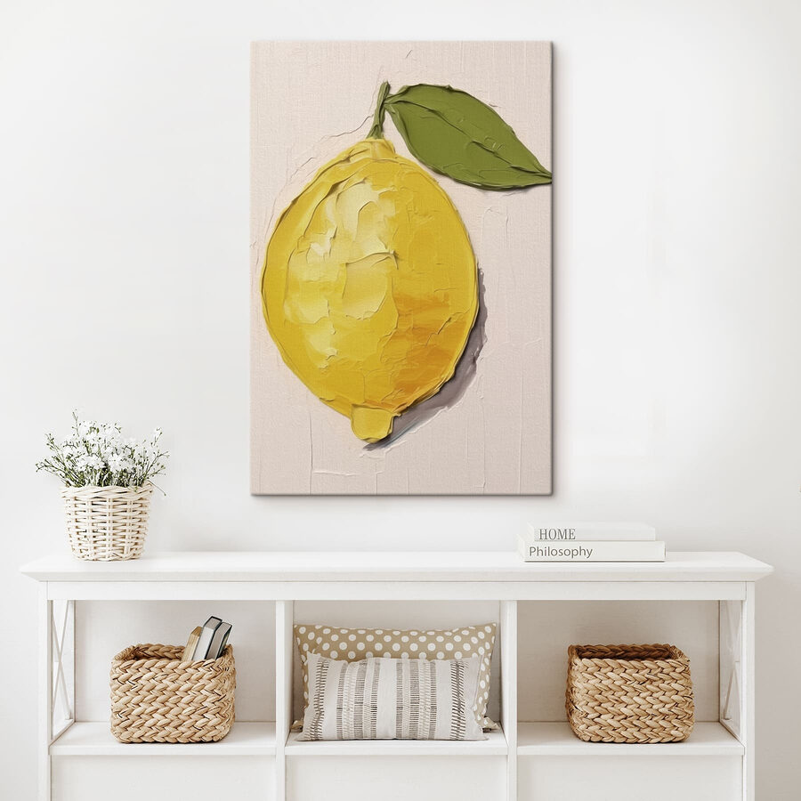 Rozjaśnij każde pomieszczenie tym uroczym wydrukiem na płótnie przedstawiającym wesołą cytrynę umieszczoną wśród świeżych liści. To jak kawałek słońca, idealny dla tych, którzy kochają zabawne akcenty w swoim wystroju. Wyobraź sobie: wchodzisz do kuchni i wita Cię ten zachwycający obraz. Nagle nawet poranna kawa staje się nieco bardziej rześka. Żywy żółty kolor i zabawny design mają sposób na wywołanie radości, podniesienie na duchu i być może przypomnienie o słonecznych piknikach lub orzeźwiających stoiskach z lemoniadą. To także wspaniały sposób na rozpoczęcie rozmowy – któż nie kocha dobrej cytrynowej historii? Idealny do tych przytulnych zakątków, którym przydałaby się odrobina smaku!