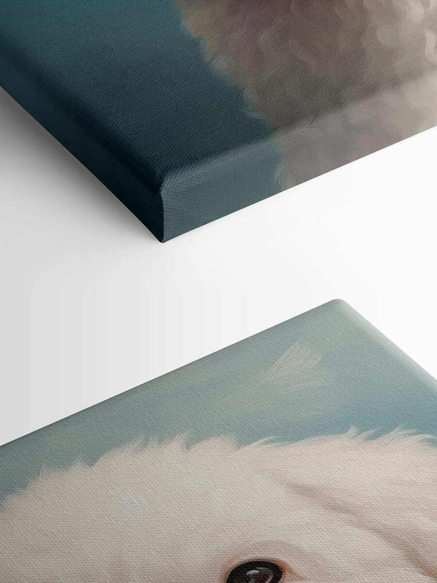 Rozjaśnij każdą przestrzeń dzięki temu uroczemu drukowi na płótnie przedstawiającemu puszystego białego psa z pyskiem szeroko otwartym w czystej radości. Wyobraź sobie, że wchodzisz do pokoju i jesteś witany przez tę szczęśliwą twarz – to jak mały wybuch słońca za każdym razem. Idealny dla miłośników psów lub tych, którzy po prostu lubią zabawny klimat, ten obraz wniesie ciepły, zachęcający akcent na ściany. Zawieś go w salonie, pokoju dziecięcym, a nawet biurze, aby podnieść na duchu w ciągu dnia pracy. Kto nie uśmiechnąłby się do takiego szczeniaka? To tak, jakby mieć przy sobie osobistego cheerleadera. Wspaniałe przypomnienie, że szczęście może przyjść w najbardziej puszystych formach!