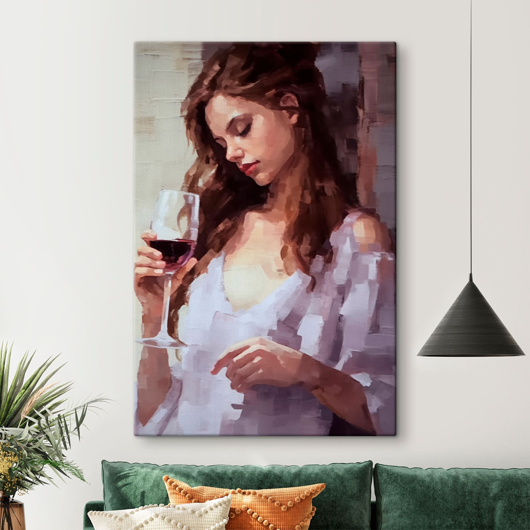 Wyobraź to sobie: przytulny wieczór, delikatne światło i ona – kobieta delektująca się chwilą z kieliszkiem czerwonego wina. Ten wydruk na płótnie oddaje kawałek życia, który jest zarówno intymny, jak i zachęcający. To tak, jakby była w sekrecie, rozkoszując się małymi radościami. Wyobraź sobie, że powiesisz ten obraz w jadalni lub kąciku do czytania, gdzie każde spojrzenie na niego wywołuje piękne sny. Znajomi mogą zapytać, skąd pochodzi, a ty uśmiechniesz się, wiedząc, że dodaje odrobinę elegancji i ciepła. To coś więcej niż sztuka; to mrugnięcie okiem na codzienne chwile i małe przypomnienie, aby wziąć życie na luzie. Idealny dla tych, którzy cenią sobie proste przyjemności.