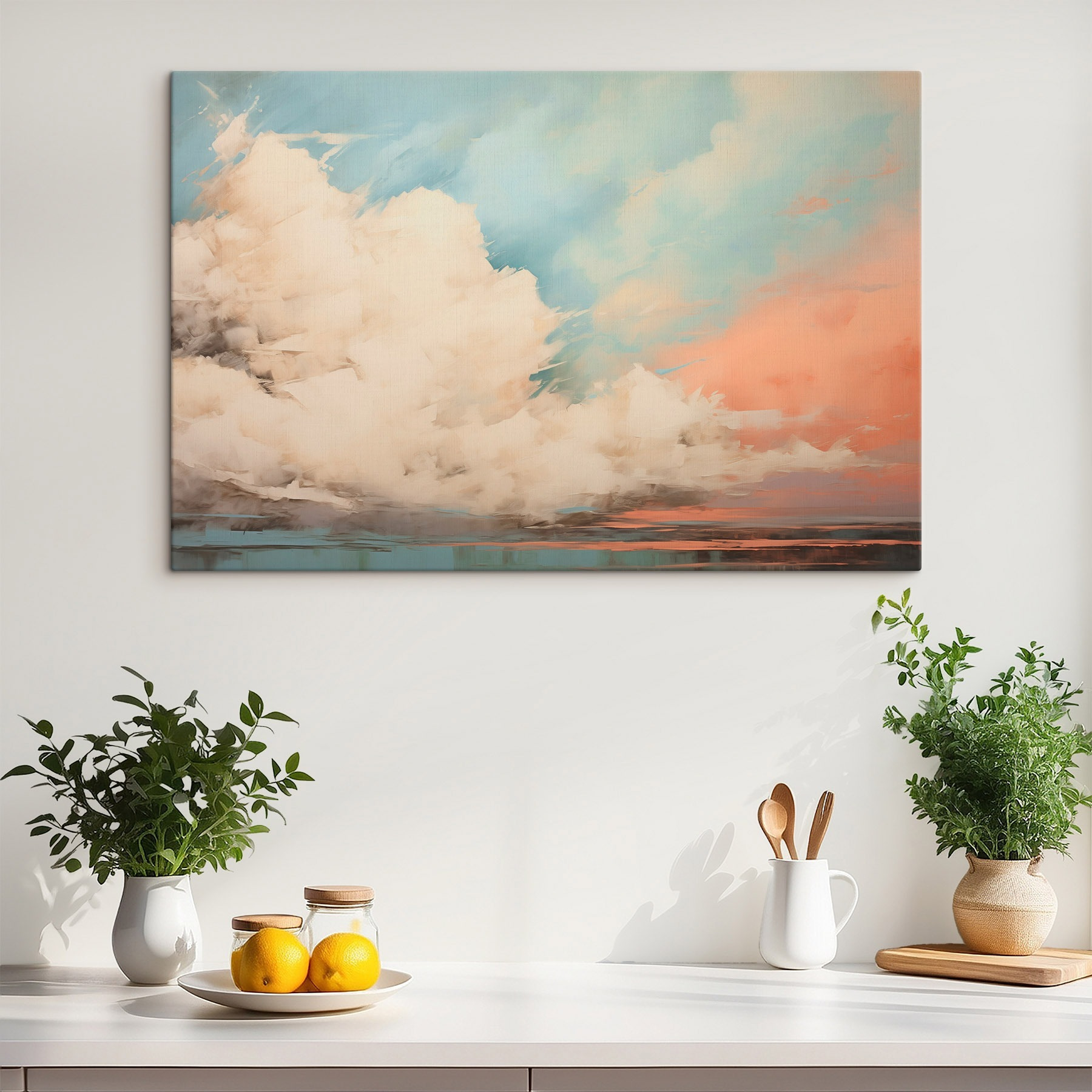 Wyobraź sobie spokojną chwilę spędzoną na wpatrywaniu się w puszyste chmury leniwie dryfujące po pogodnym niebie. Ten wydruk na płótnie właśnie to robi – zachęcając każdego, kto przechodzi obok, do zatrzymania się i podziwiania widoku. Miękkie odcienie łączą się bez wysiłku, tworząc spokojną atmosferę, która przypomina delikatny uścisk. Idealny do przytulnego salonu lub cichej sypialni, wnosi kawałek natury do wnętrza. Wyobraź sobie, jak zwijasz się w kłębek z dobrą książką, czując, jak ogarnia cię spokój. Ten kawałek nie tylko zdobi ścianę; pobudza marzenia i przytulne wibracje. Kto nie chciałby tego rodzaju magii w swojej przestrzeni?