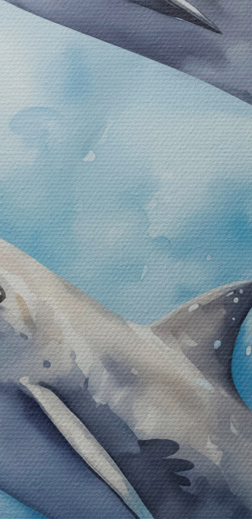 Zanurz się w sennej scenerii oceanu dzięki temu urzekającemu płótnie przedstawiającemu dwa delfiny z gracją płynące przez mieniące się wody. Złapane w zabawnym momencie, te inteligentne stworzenia przypominają nam o radości i wolności znalezionej pod falami. Miękkie błękity i płynne akwarele tworzą spokojną atmosferę, idealną do rozjaśnienia każdej przestrzeni. Wyobraź sobie tę wesołą grafikę wiszącą w przytulnym salonie lub sypialni dziecka. Dodaje odrobinę magii oceanu, rozbudzając miłość do życia morskiego, a może po prostu kilka marzeń o plażowych wypadach. Sztuka taka jak ta może przenieść każdego, choćby na chwilę, do spokojnej nadmorskiej ucieczki.
