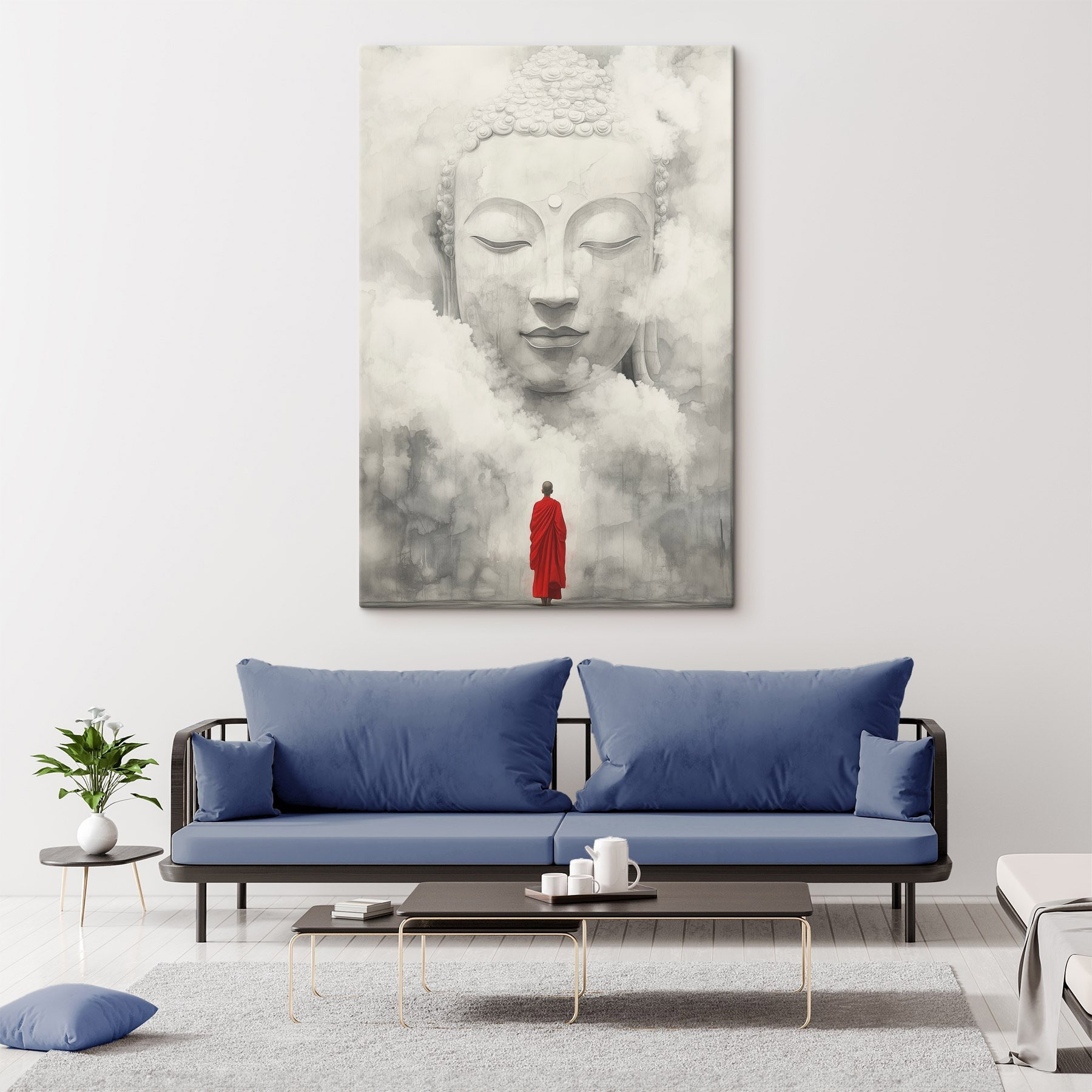 Wejdź do sceny, która wydaje się niemal nieziemska dzięki temu oszałamiającemu wydrukowi na płótnie. Mnich, odziany w żywą czerwień, stoi przed ogromnym posągiem, skąpanym w miękkich chmurach, które wydają się szeptać starożytne tajemnice. To nie tylko sztuka; to zaproszenie do oddechu, refleksji, a może nawet znalezienia odrobiny spokoju pośród życiowego chaosu. Wyobraź sobie, że wisi na ścianie – codzienne przypomnienie, aby zatrzymać się i chłonąć chwilę. Przyjaciele mogą zatrzymać się i zgubić w spokoju, dzieląc się historiami lub po prostu patrząc w zdumieniu. Ten kawałek uderza w strunę, prawda? Idealny dla tych, którzy cenią sztukę o głębszym znaczeniu. Idealny do salonów, przestrzeni medytacyjnych lub wszędzie tam, gdzie potrzeba odrobiny duszy.