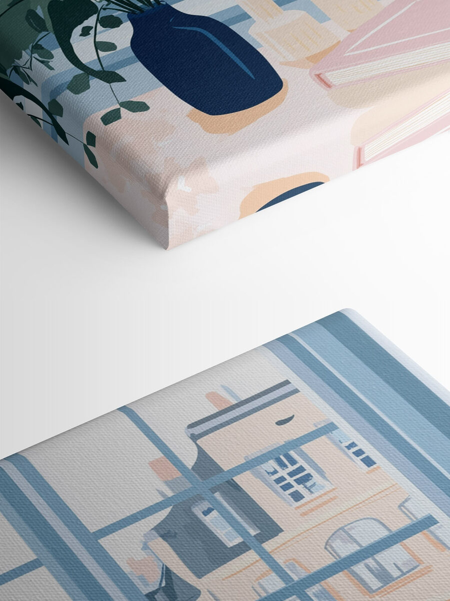 Ten wydruk na płótnie przedstawiający pogodną scenę za oknem wniesie odrobinę spokoju do każdego pomieszczenia. Wyobraź sobie: kwitnące kwiaty, delikatne migotanie świec i to przytulne uczucie, które można uzyskać tylko będąc w domu. Delikatne błękity i zielenie sprawiają, że jest to powiew świeżego powietrza – idealny do salonu lub spokojnego kącika do czytania. To tak, jakby mieć kawałek natury w domu, gdzie każde spojrzenie może poprawić nastrój. Wyobraź sobie, jak zwijasz się w kłębek z książką, ciepłą filiżanką herbaty w pobliżu, a promienie słońca wpadają przez okno. Cudownie zachęcająca, ta grafika jest delikatnym przypomnieniem, aby zatrzymać się i docenić małe radości.