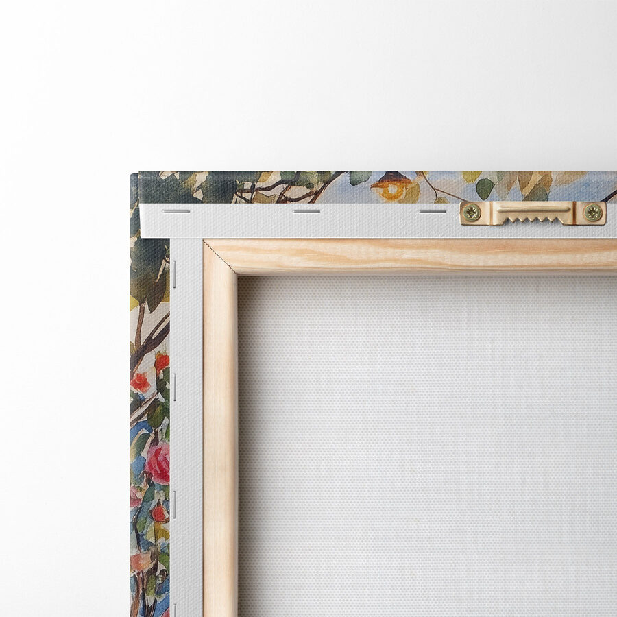 Wyobraź sobie, że wchodzisz do swojego salonu i przenosisz się na przytulny taras z widokiem na połyskujące jezioro. Ten wydruk na płótnie jest przepustką do tej marzycielskiej ucieczki. Miękkie, płynne akwarele ożywiają scenę wypełnioną kwitnącymi różami i migoczącymi światłami, które wydają się tańczyć w powietrzu. Wyobraź sobie wieczory spędzone na popijaniu herbaty lub dzieleniu się sekretami pod gwiazdami, a wszystko to w zaciszu własnego domu. To jak posiadanie własnego kawałka raju, przypominającego o zwolnieniu tempa i delektowaniu się prostymi, pięknymi chwilami. Idealny do wywoływania radości i ciepłych rozmów.