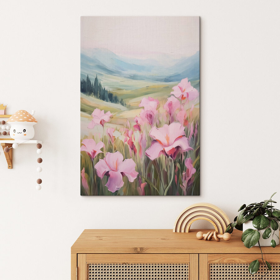 Przekształć dowolną przestrzeń w spokojne miejsce dzięki temu oszałamiającemu drukowi na płótnie przedstawiającemu różowe kwiaty tańczące na oświetlonym słońcem polu. Wyobraź sobie spacer po łące w ciepły dzień, ze słodkim zapachem kwiatów unoszącym się w powietrzu. Ta grafika oddaje ten właśnie klimat, wprowadzając ciepło i urok do Twojego domu. Dzięki miękkim odcieniom i delikatnym pociągnięciom pędzla, zaprasza do poczucia spokoju i wyciszenia. Idealny do przytulnego salonu lub cichego kącika w rogu, może po prostu stać się ulubionym miejscem do relaksu, utraty poczucia czasu i delektowania się małymi chwilami życia. Kto by pomyślał, że bukiet kwiatów może zdziałać tak wiele?
