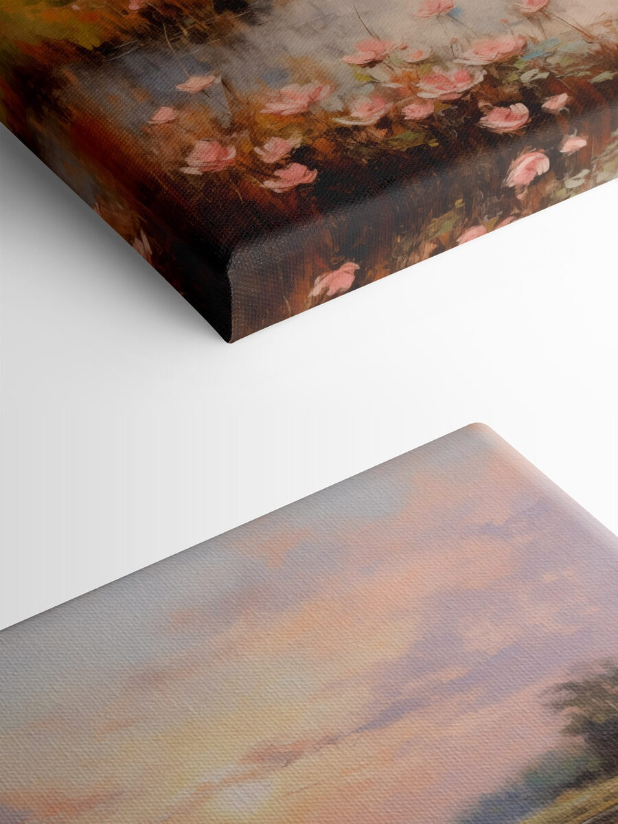 Wyobraź sobie, że za każdym razem, gdy spojrzysz na swoją ścianę, znajdziesz się w spokojnej scenerii jeziora. Ten wydruk na płótnie oddaje magię spokojnego poranka, w którym pastelowe niebo i kwitnące kwiaty tańczą na delikatnej bryzie. Odbicie na wodzie wydaje się niemal żywe, zapraszając do marzeń o spokojnych popołudniach. To tak, jakby mieć kawałek natury w domu. Idealny do rozjaśnienia przytulnego kącika lub dodania odrobiny spokoju do zatłoczonego pokoju – pomyśl o nim jak o codziennej dawce zen. Kto by nie chciał takiej atmosfery?