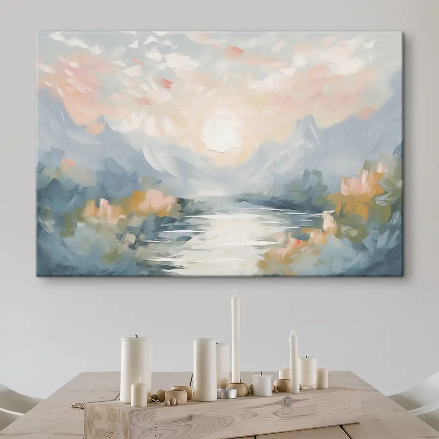 Wyobraź sobie, że wracasz do domu po długim dniu i wita Cię wspaniały wydruk na płótnie przedstawiający rzekę wijącą się przez majestatyczne góry. To jak sekretna ucieczka natury wprost na twoją ścianę. Delikatne kolory zmierzchu obmywają scenę, tworząc spokojną atmosferę, która może sprawić, że na chwilę zapomnisz o świecie. Wyobraź sobie ten obraz wiszący w przytulnym kącie, gdzie popijasz kawę lub zanurzasz się w książce. To nie tylko dekoracja; to kawałek spokoju, zachęcający do marzeń i spokojnych ucieczek po gorączkowym dniu. Mały kawałek raju, który tylko czeka, aby rozjaśnić codzienne życie.