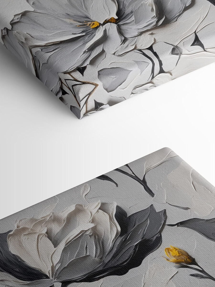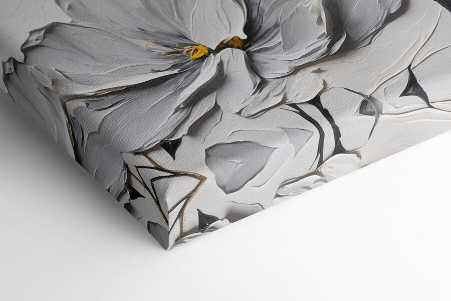 Rozjaśnij każdy kąt dzięki temu uroczemu drukowi na płótnie przedstawiającemu wdzięczne kwiaty na delikatnym białym tle. To jak przeniesienie ogrodu do domu, bez alergii! Delikatne odcienie doskonale się komponują, tworząc spokojną atmosferę, która po prostu dobrze się czuje. Wyobraź sobie, że popijasz kawę, tracąc poczucie czasu, wpatrując się w te bujne płatki. Idealny do salonu lub przytulnego kącika do czytania, ten mebel emanuje elegancją i ciepłem. Dodatkowo, jest to świetna okazja do rozpoczęcia rozmowy – znajomi będą się zastanawiać, czy właśnie nie byłeś na kwiatowych wakacjach! Mały kawałek natury na ścianie.