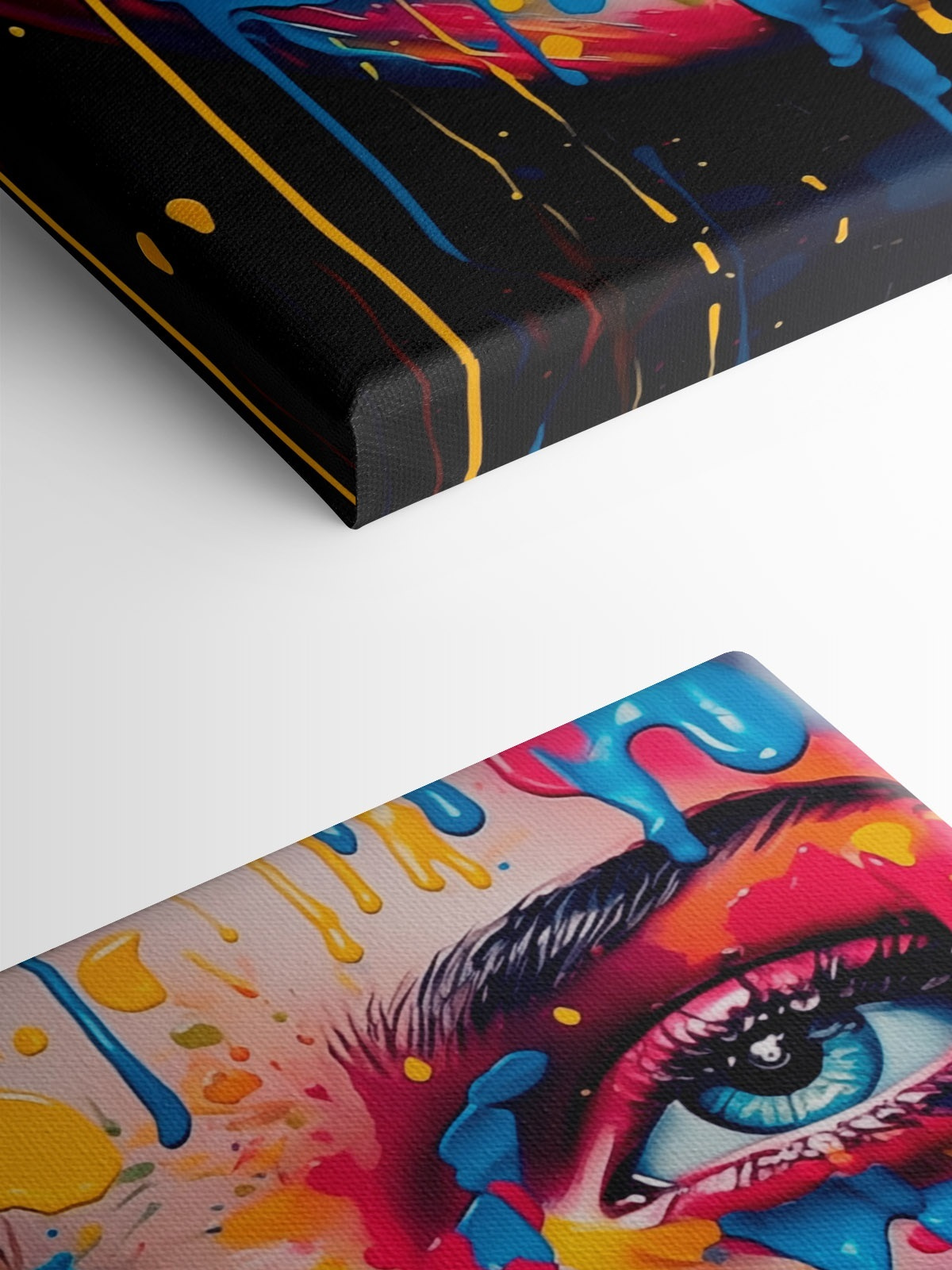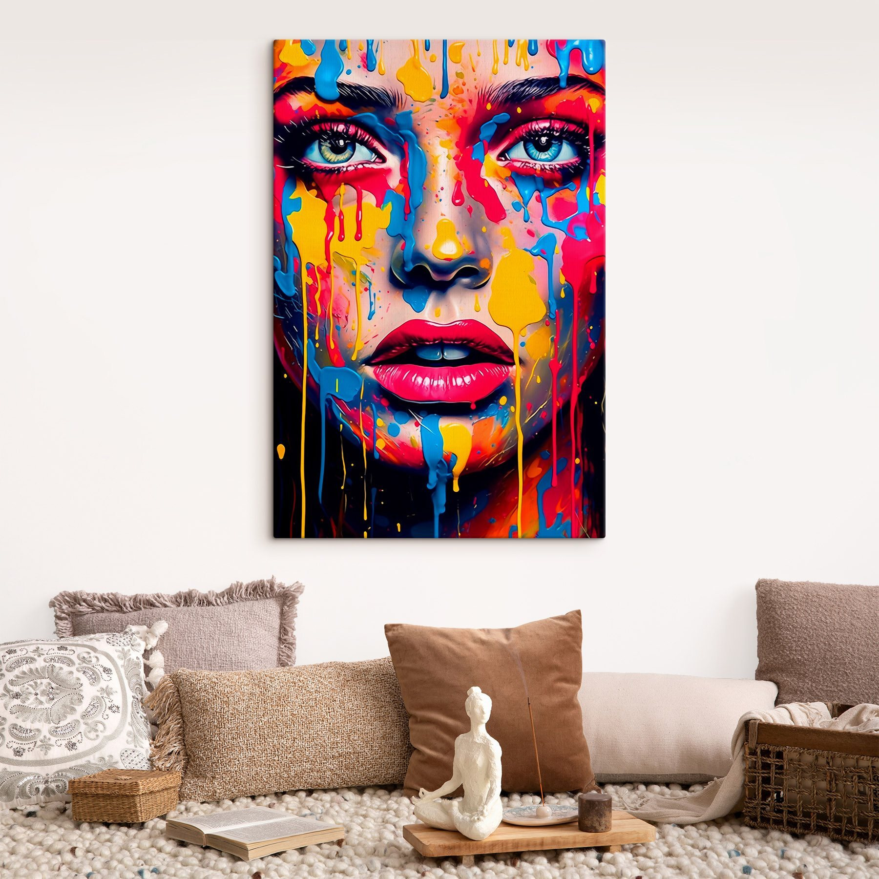 Wnieś odrobinę życia do każdej przestrzeni dzięki temu uderzającemu wydrukowi na płótnie. Przedstawia odważną, ekspresyjną kobietę ozdobioną kaskadą kolorowych farb, to tak, jakby zapraszała cię do swojego świata kreatywności. Wyobraź sobie jej energię rozświetlającą salon lub studio – to dopiero początek rozmowy! Każda kropla farby wydaje się opowiadać historię, inspirując i dodając zabawny akcent do wystroju. Idealny dla tych, którzy kochają sztukę, która przełamuje schematy. Powieś go i obserwuj, jak zmienia klimat – ciekawy, intrygujący i nieco ostry!