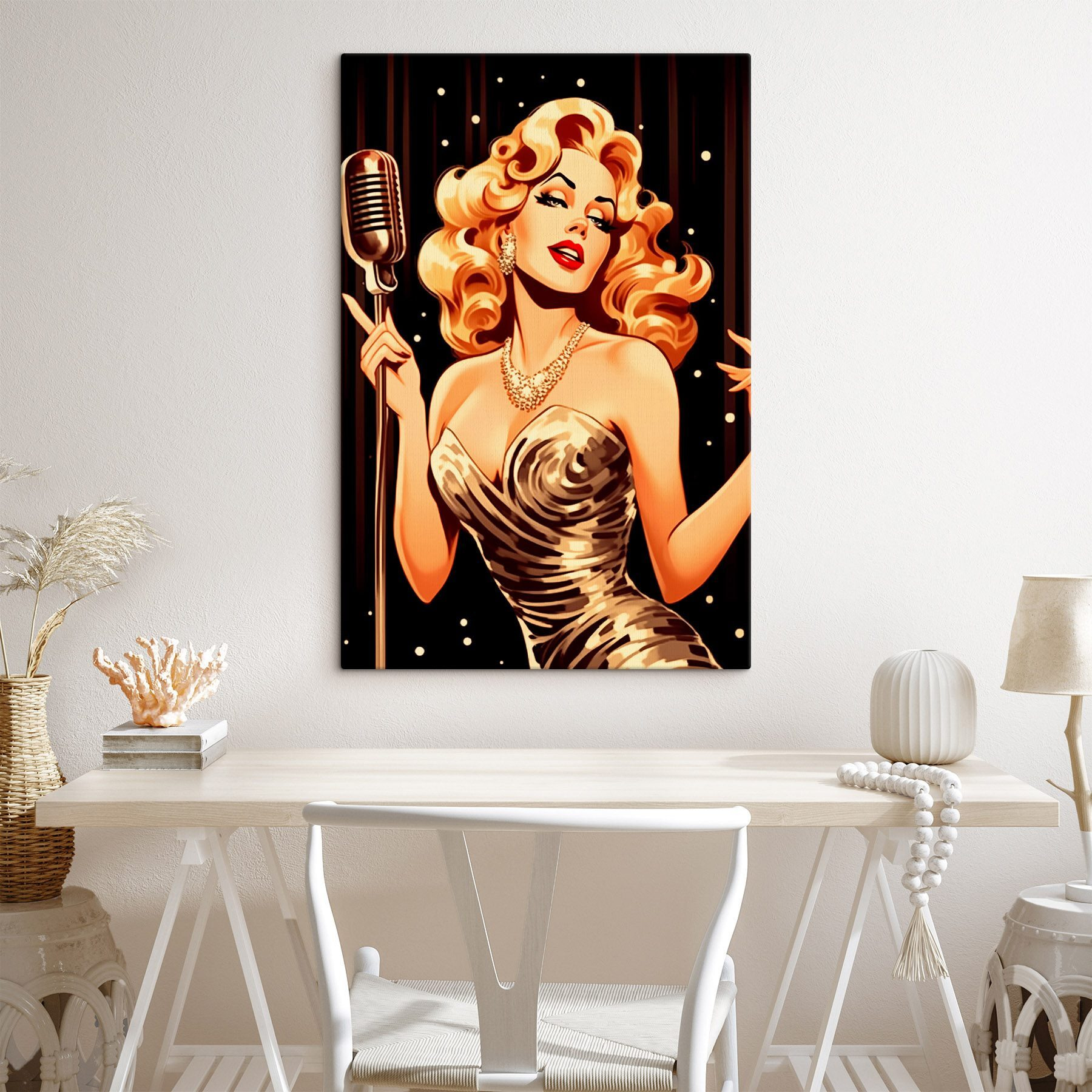 Poczuj klimat zadymionego klubu jazzowego w swoim salonie. Ten wydruk na płótnie, przedstawiający czarującą kobietę wyśpiewującą melodię do staromodnego mikrofonu, natychmiast doda uroku i nostalgii każdej przestrzeni. Wyobraź sobie, że wisi nad przytulnym kącikiem do czytania lub rozjaśnia domowe biuro. Może nawet wywołać ten szczery moment śpiewania podczas wieczoru gier, prawda? Dzięki swojej zabawnej elegancji, to tak, jakby mieć małą gwiazdę serialu siedzącą na ścianie, gotową do inspirowania kreatywności lub po prostu spontanicznej imprezy tanecznej! To coś więcej niż dekoracja; to nastrój.